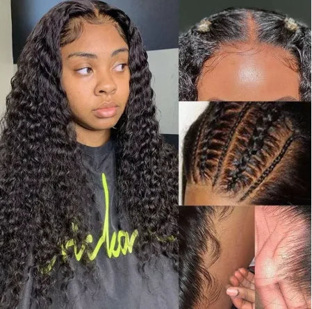 SH Natural Black 150% 10-28 Inches Water Wava Human Hair Lace Front Wig For Women