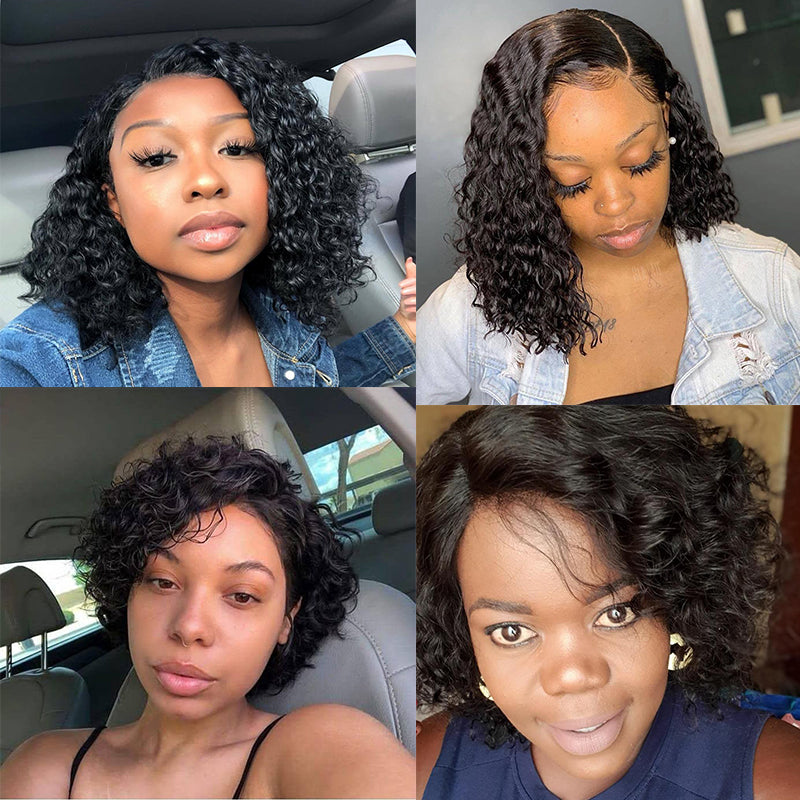 Short Bob Wigs Remy Indian Virgin Human Hair Lace Frontal Wigs 150% density water wave curly bob Deep Parting 13x6 Water Wave