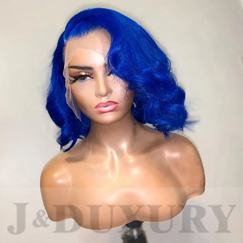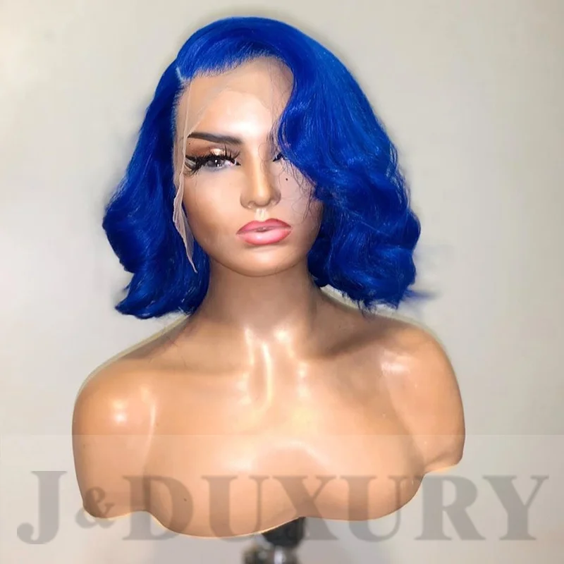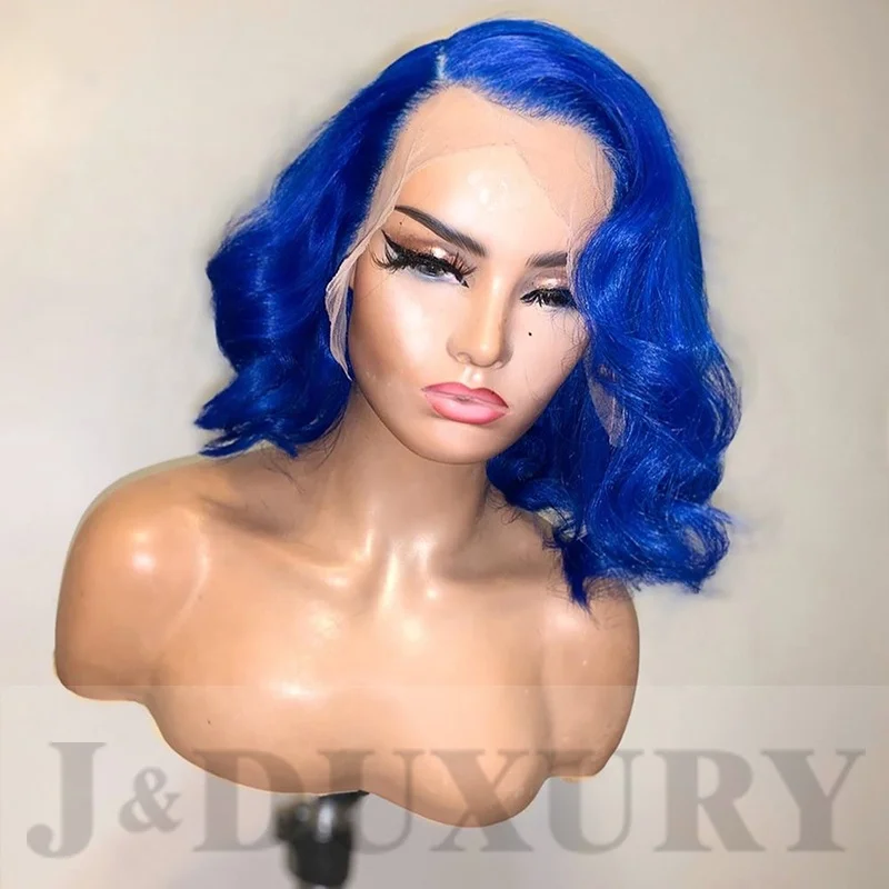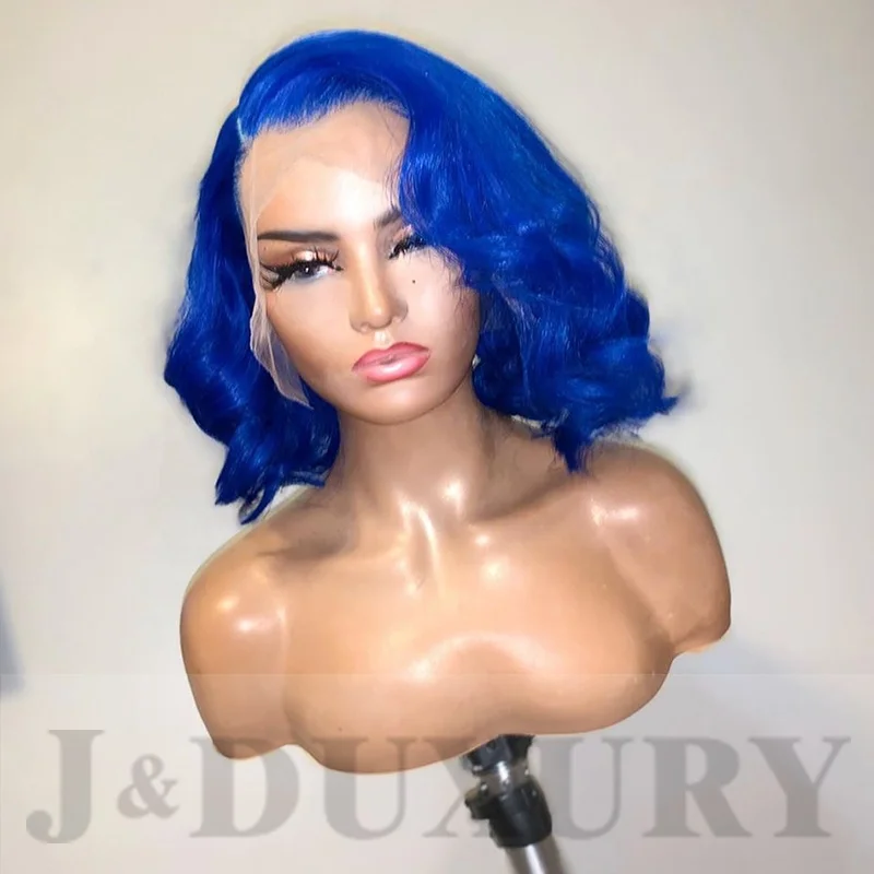 Peluca corta del frente del cordón del pelo humano onda del cuerpo peluca del cordón 360 pelucas delanteras del cordón transparente del color azul para las mujeres negras