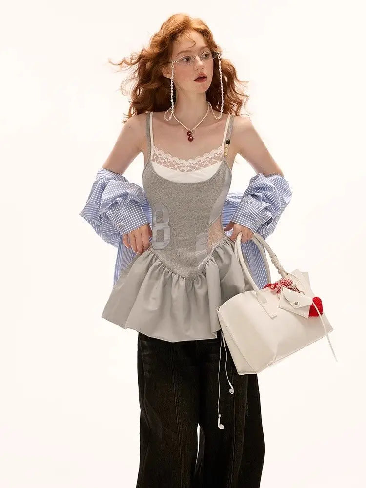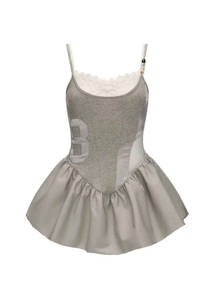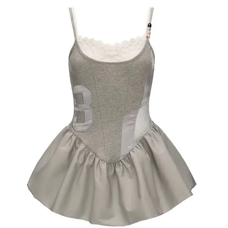 Simple Harajuku Elastic Waist-tightening Spliced flower Bud Suspender College Style Dress Women Summer New Shopping Top Skirt