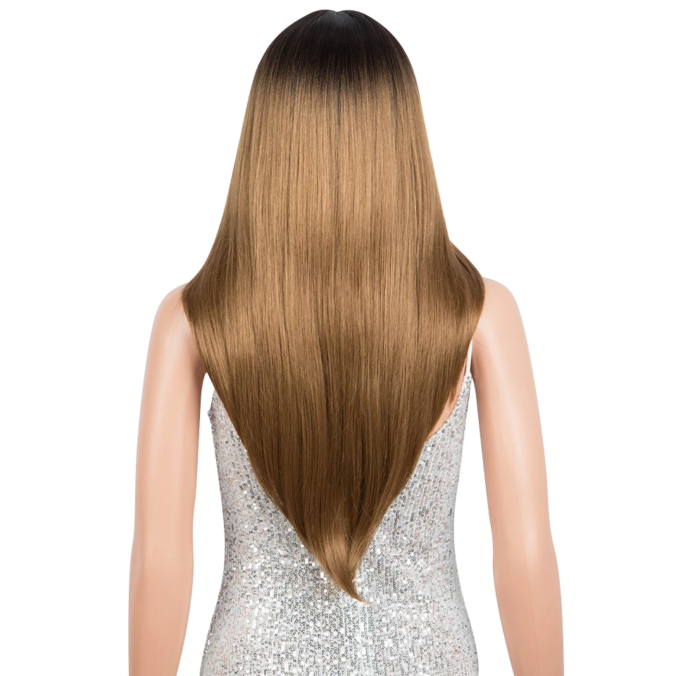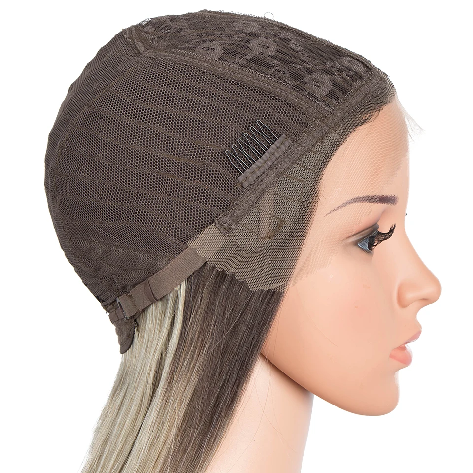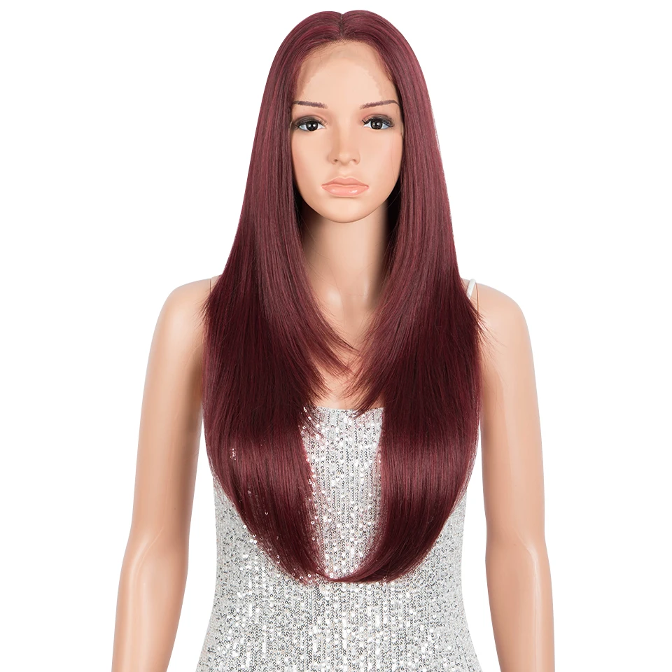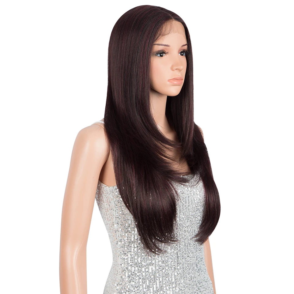 sleek wholesale hot selling heat resistant fiber middle part long straight Swiss lace frontal wig synthetic hair wig for women