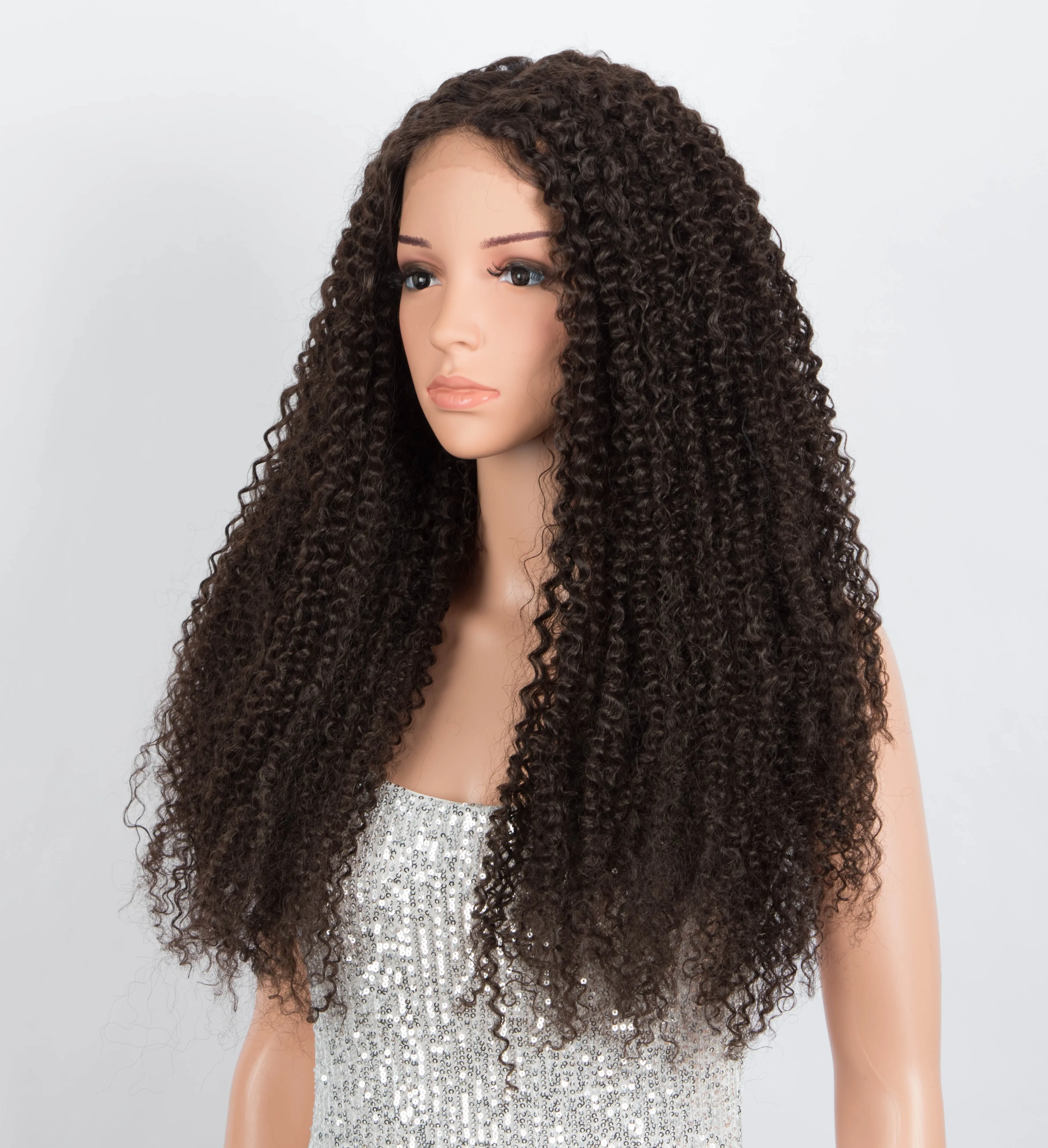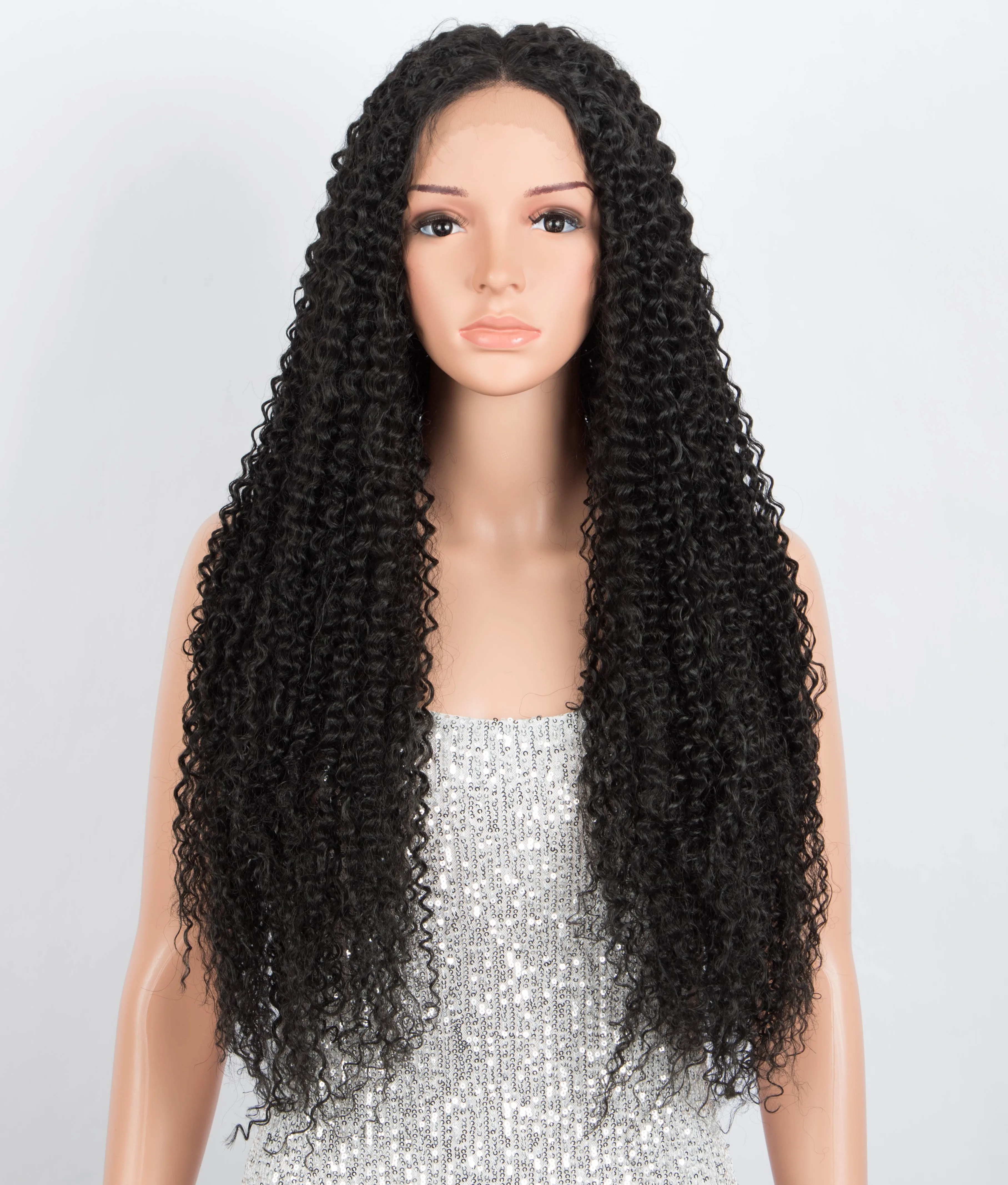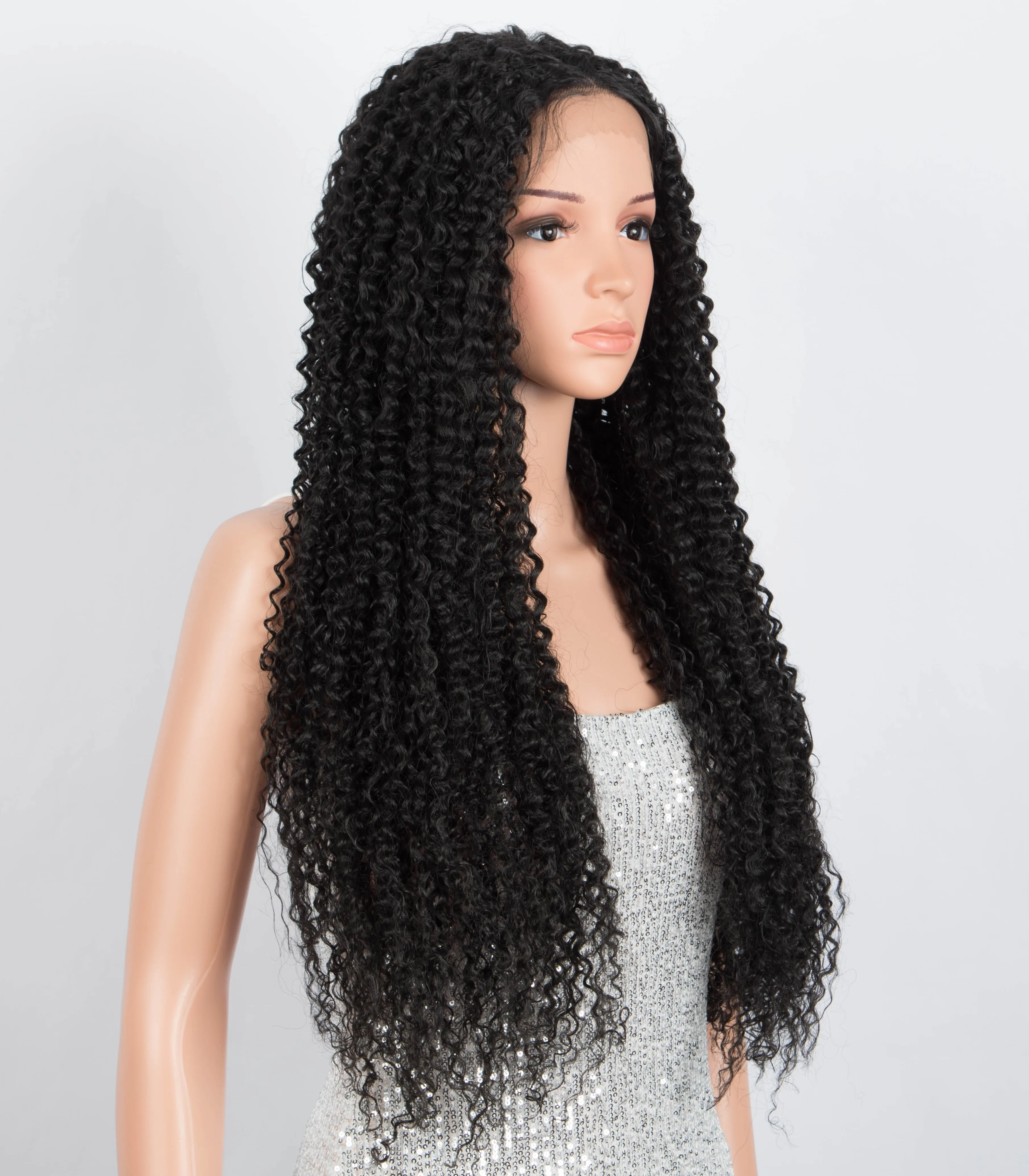 sleek wholesale hot selling heat resistant fiber super soft long deep wave Swiss lace frontal wig synthetic hair wig for women