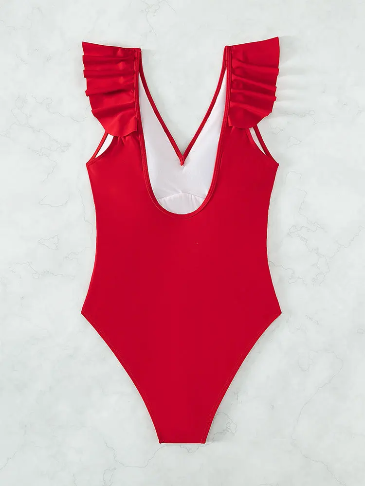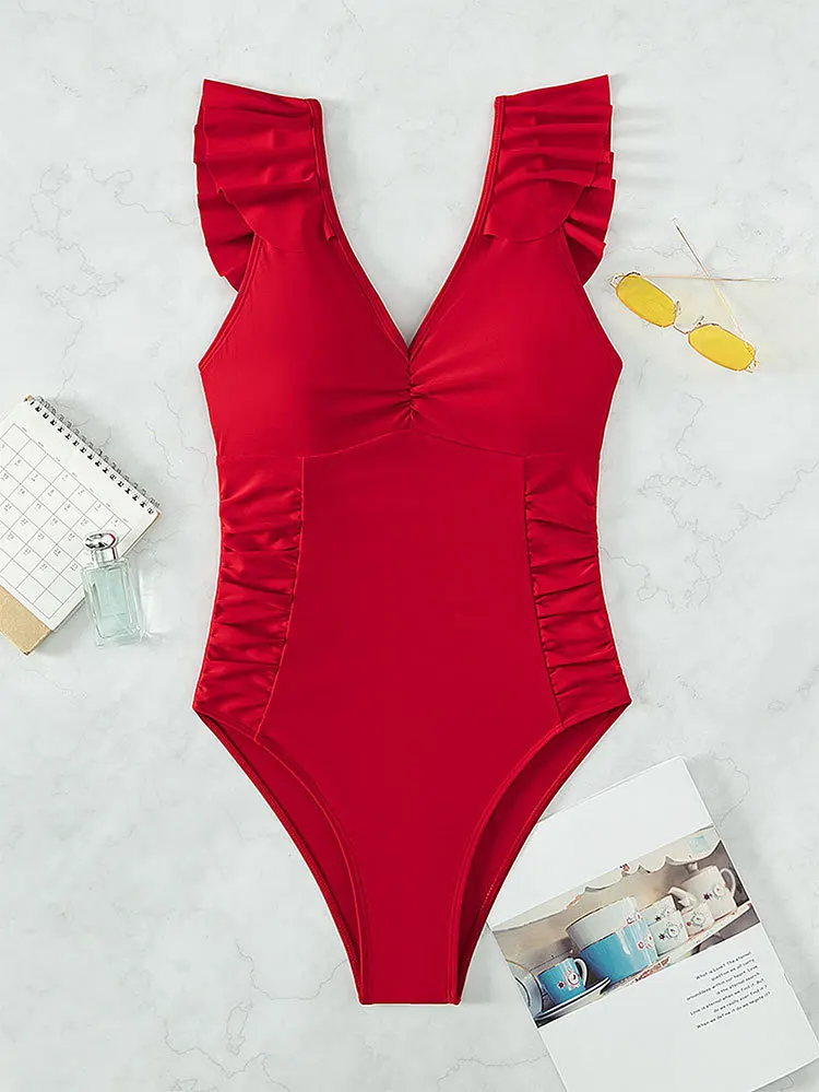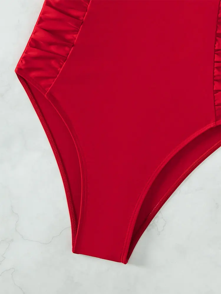Special Fabric One piece swimwear 2024 Sexy One Shoulder Ruffle Swimsuit Women Backless Bathing Suit Beachwear Push Up Monokini