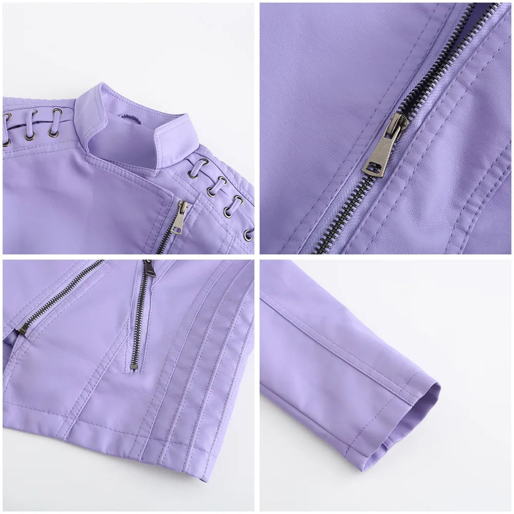 Spring Autumn Leather Jacket Women Slim Fit Motor Biker PU Leather Short Coat Stand Collar Ladies Zipper Outerwear 2024 New
