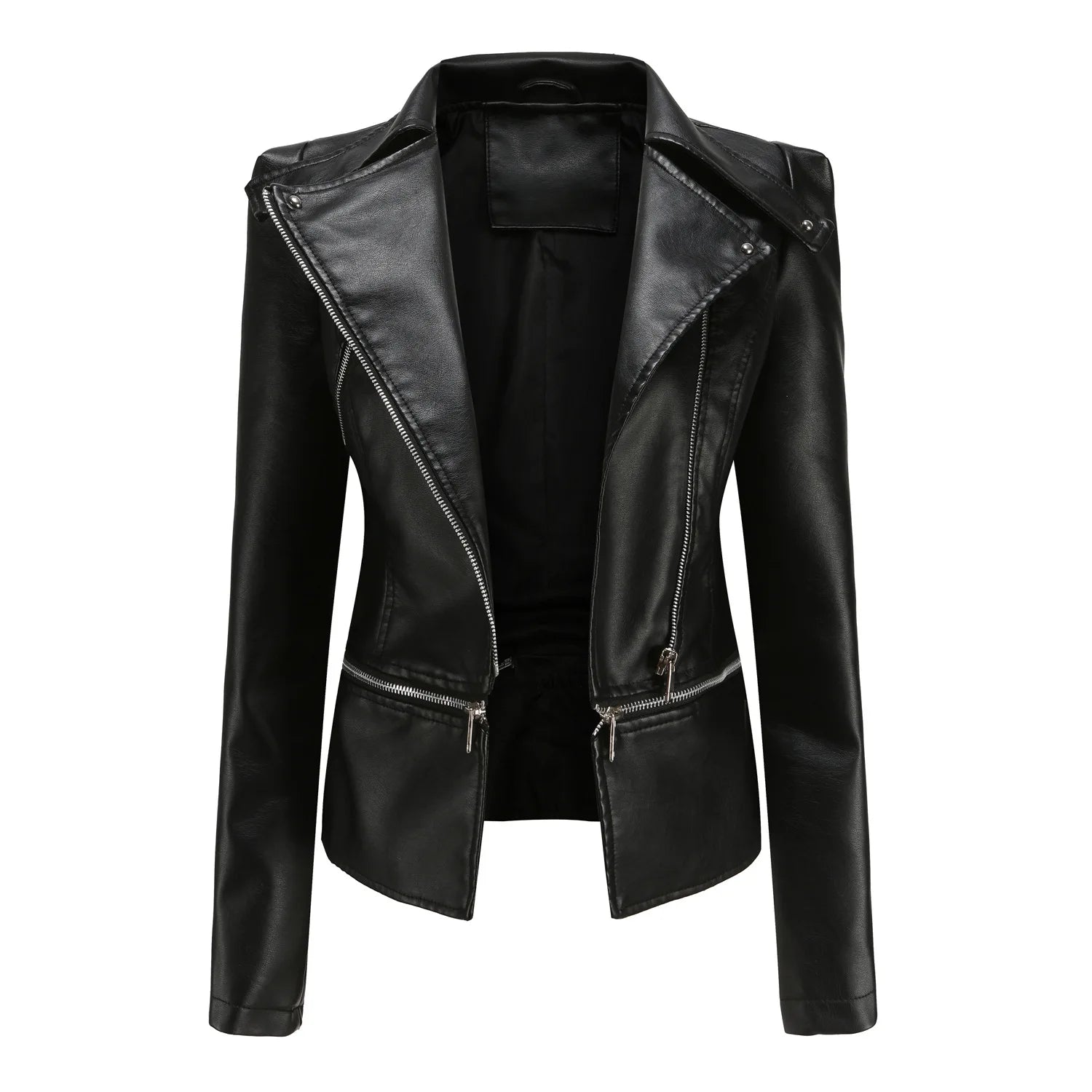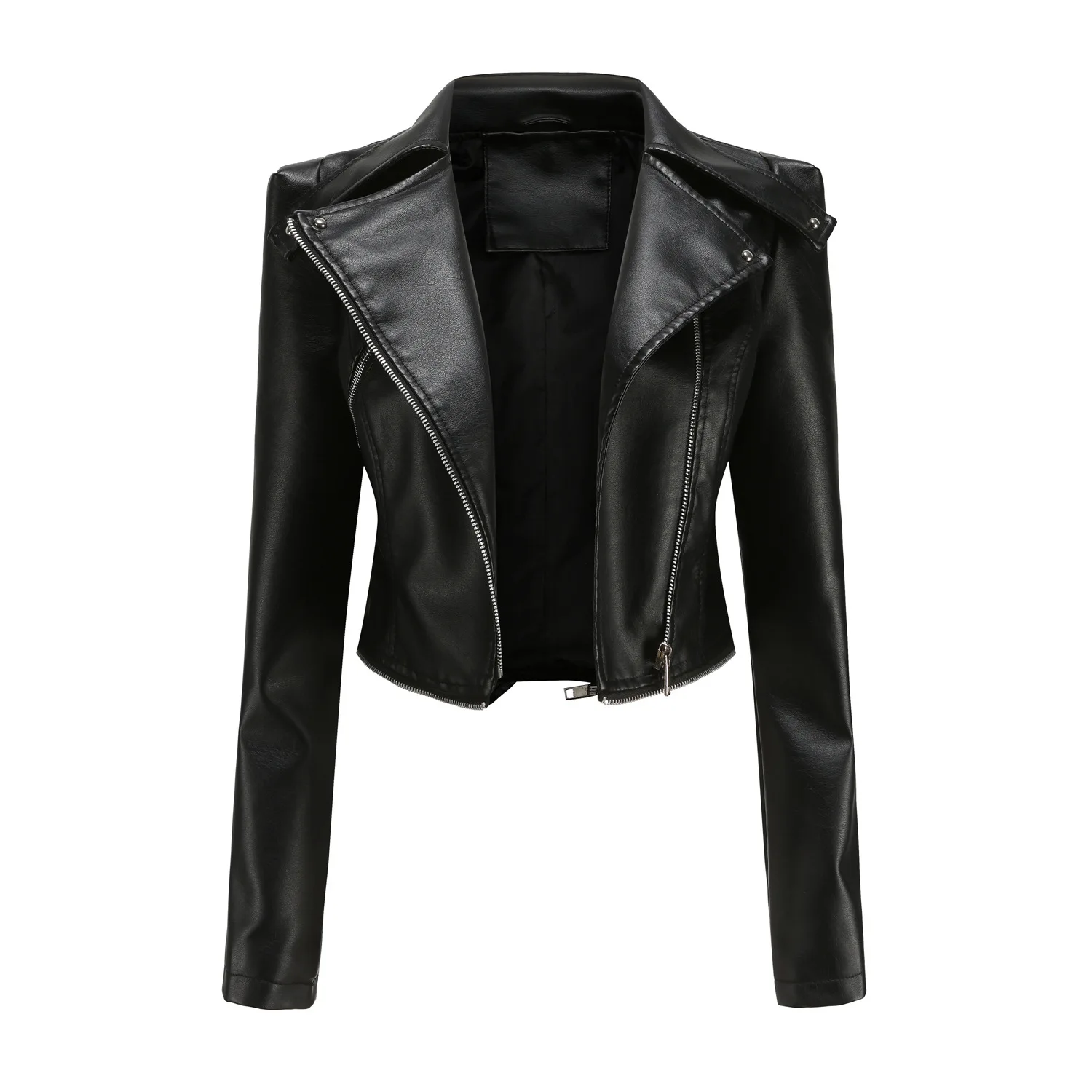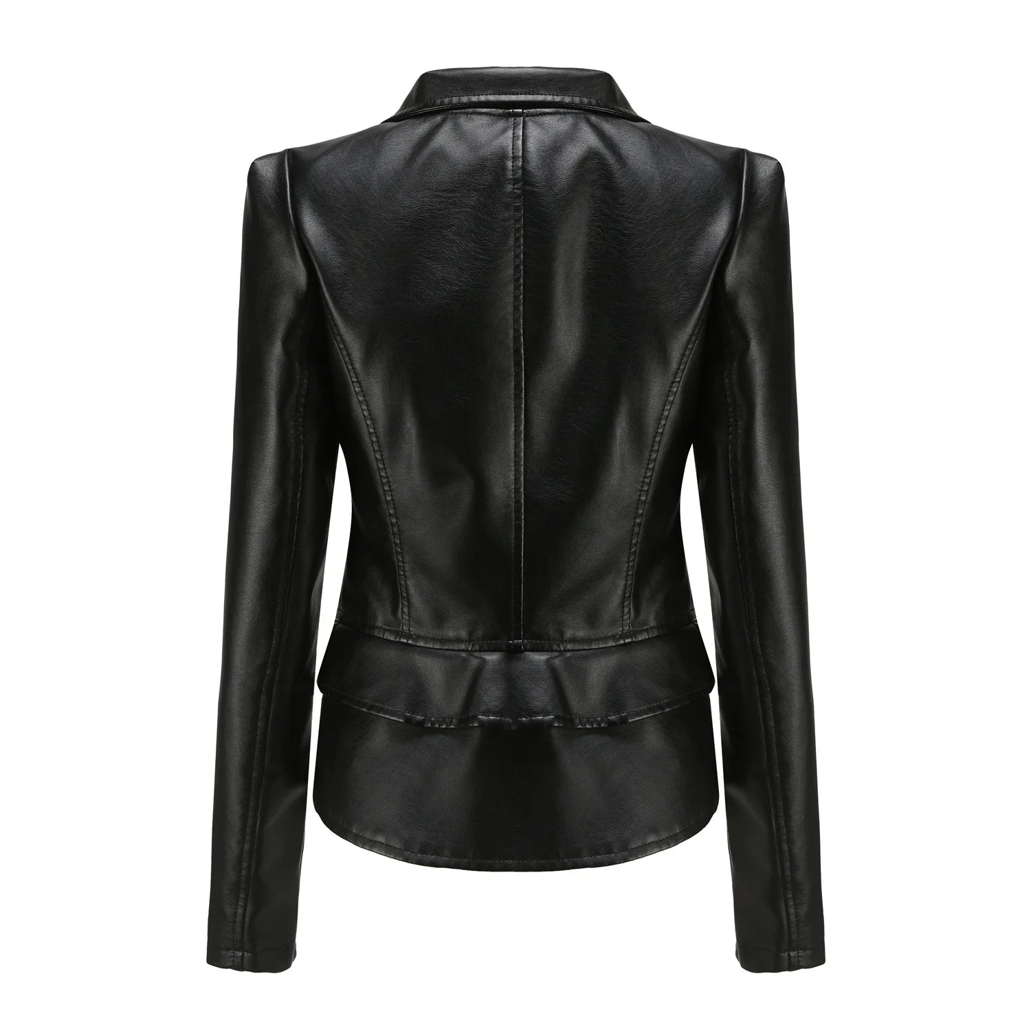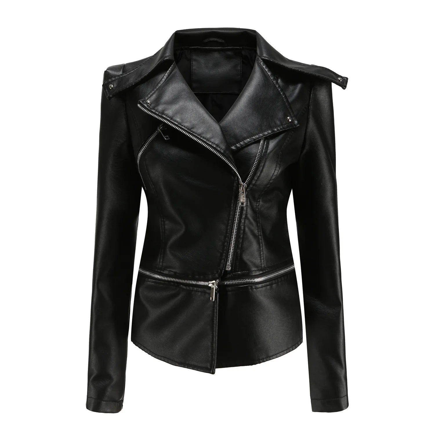 Spring Autumn Motorcycle PU Leather Jacket Women Casual Leather Coat Female Long Sleeve Turn-down Collar Solid Outwear