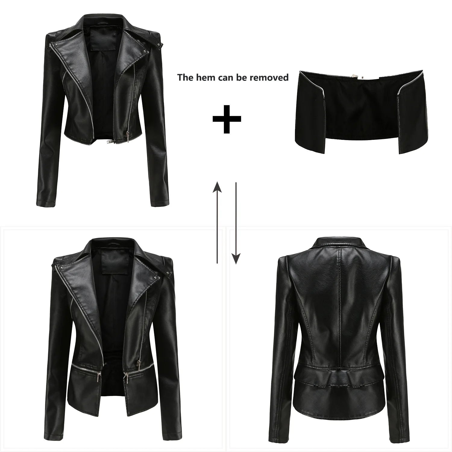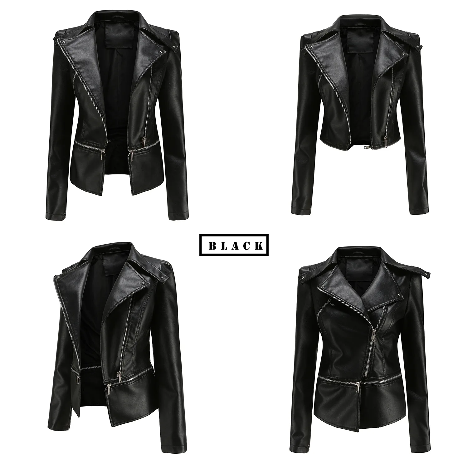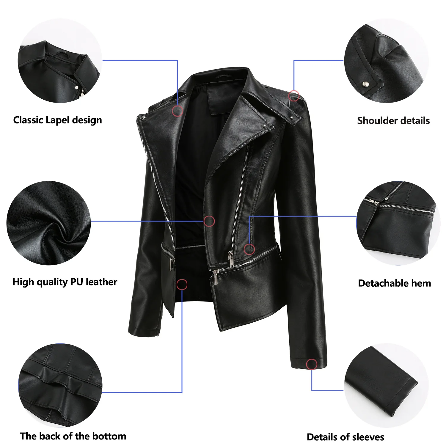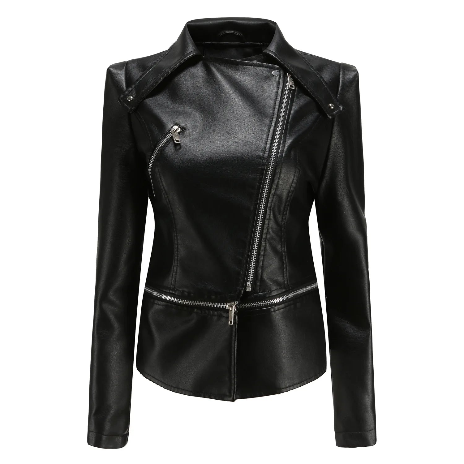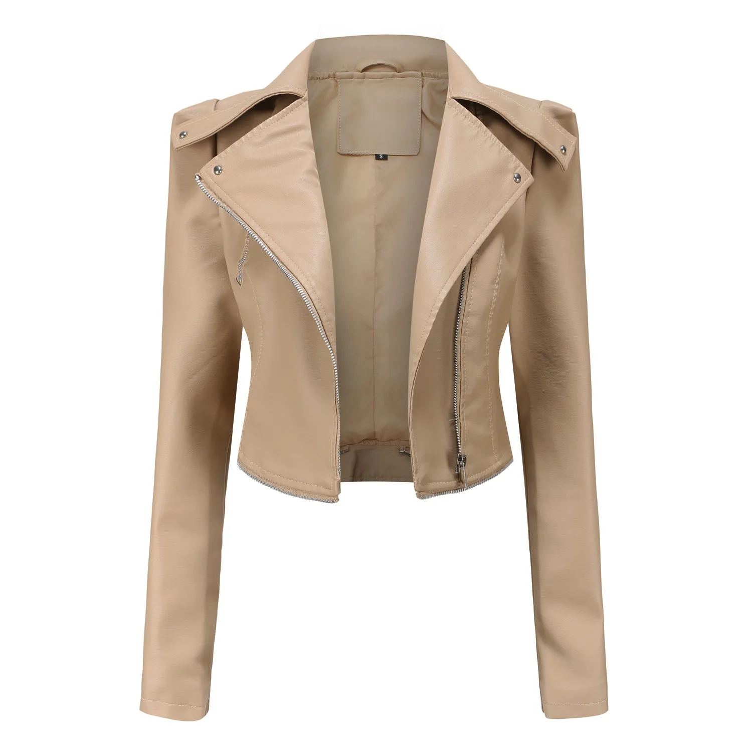Spring Autumn Motorcycle PU Leather Jacket Women Casual Leather Coat Female Long Sleeve Turn-down Collar Solid Outwear