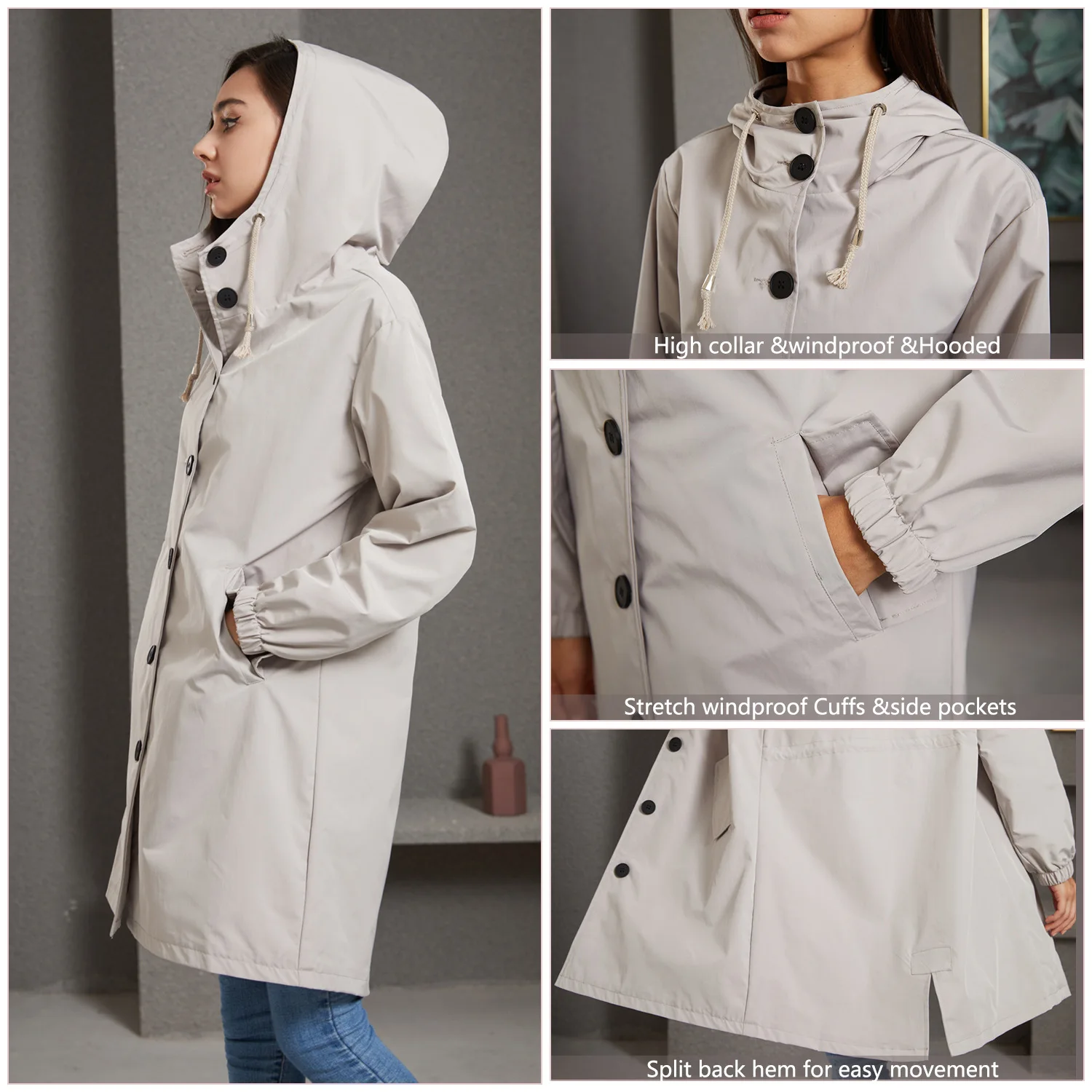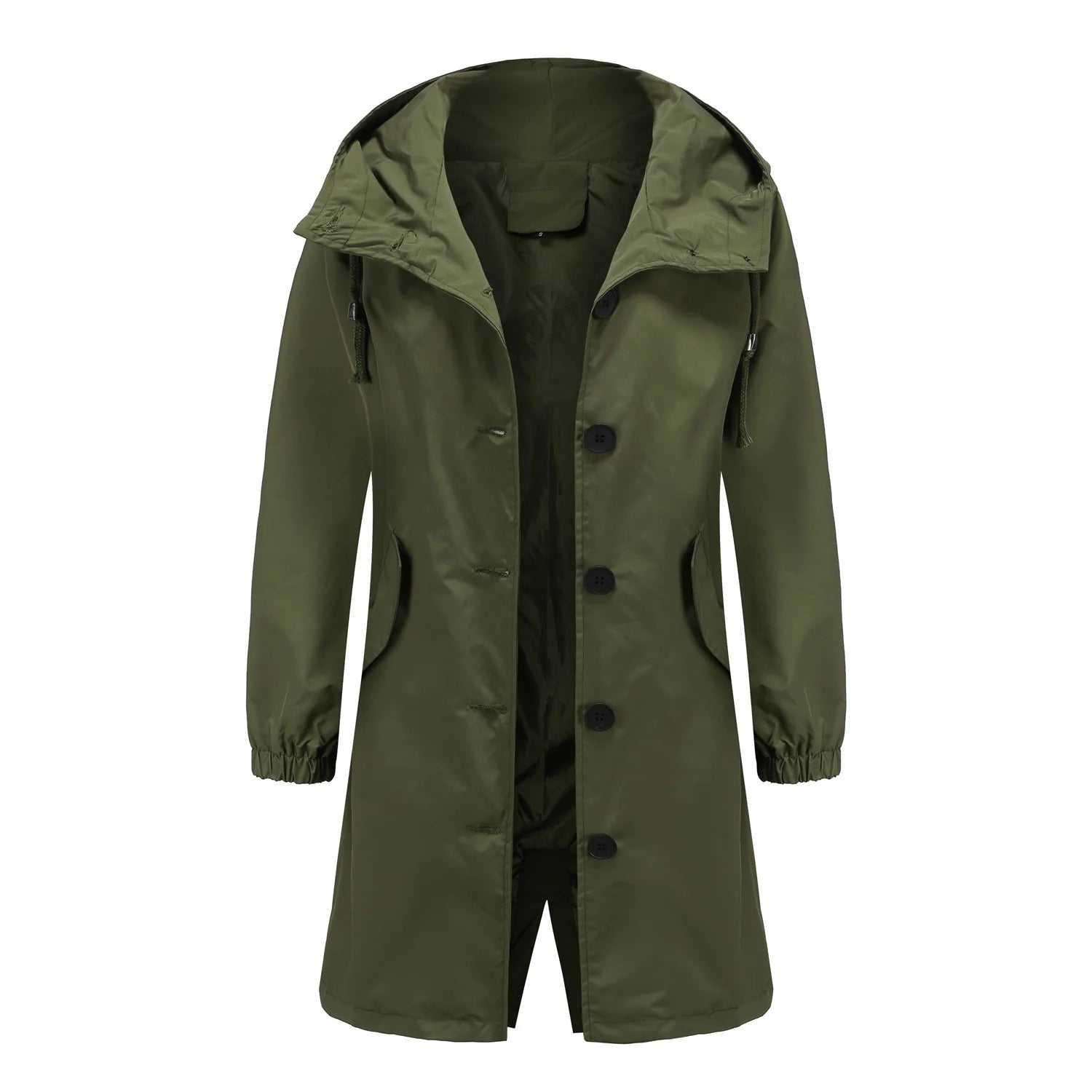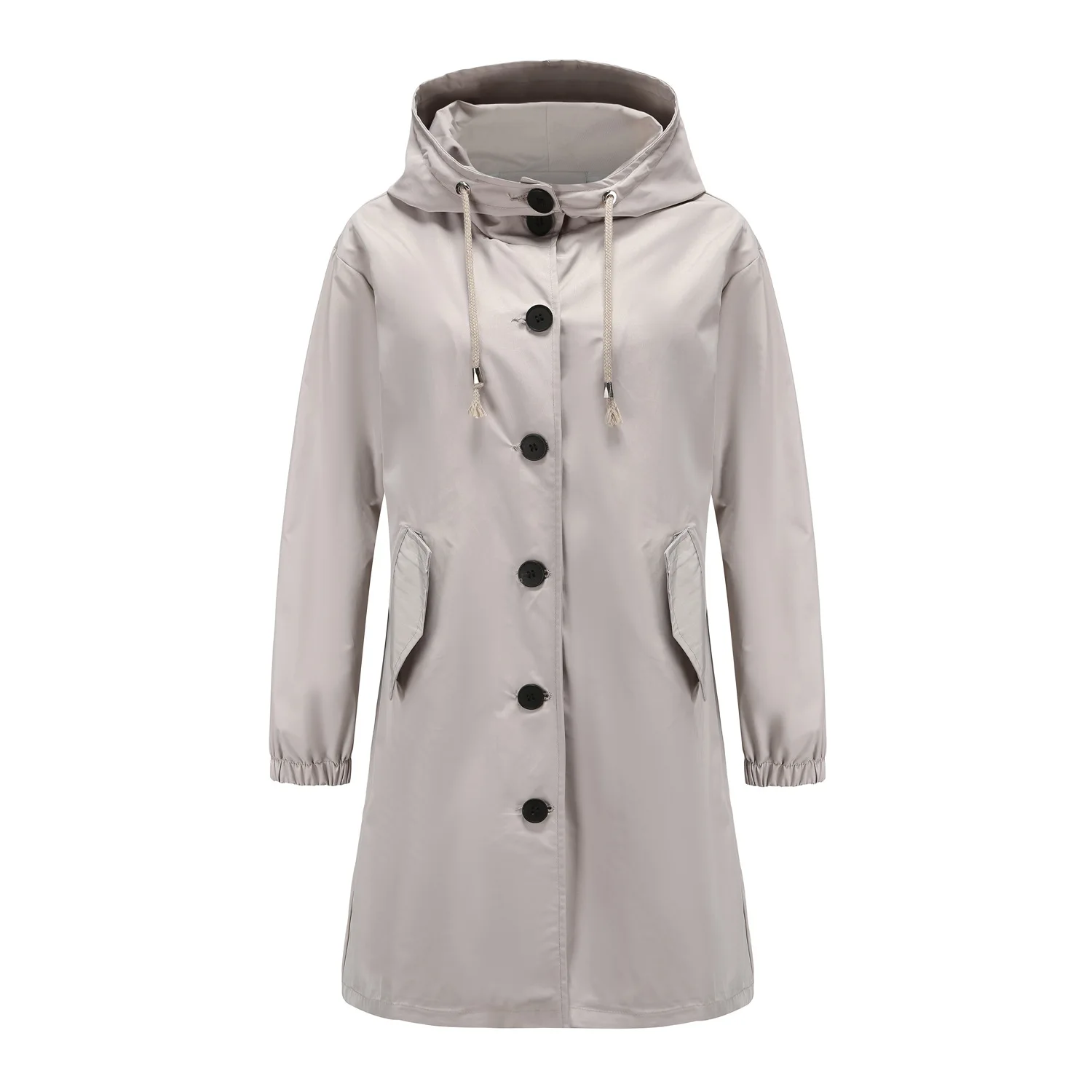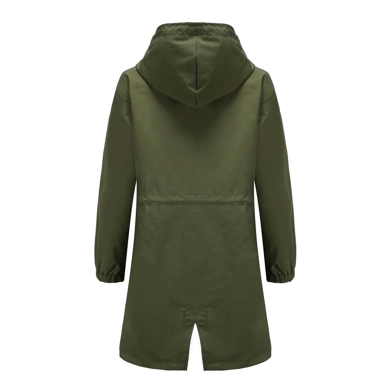 Spring Autumn Women's Trench Coat Water-Repellent Hooded Windbreaker Outdoor Loose Casual Zipper Long Jacket