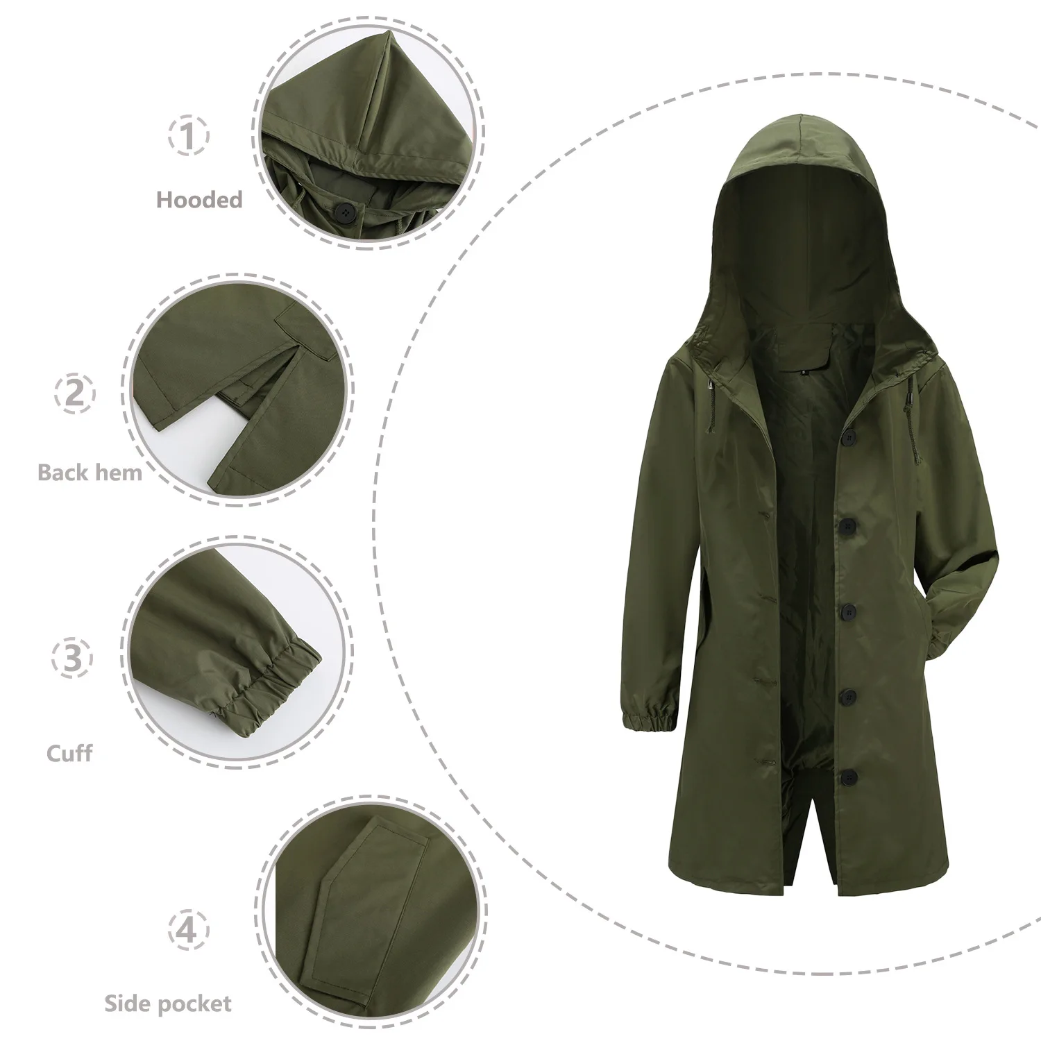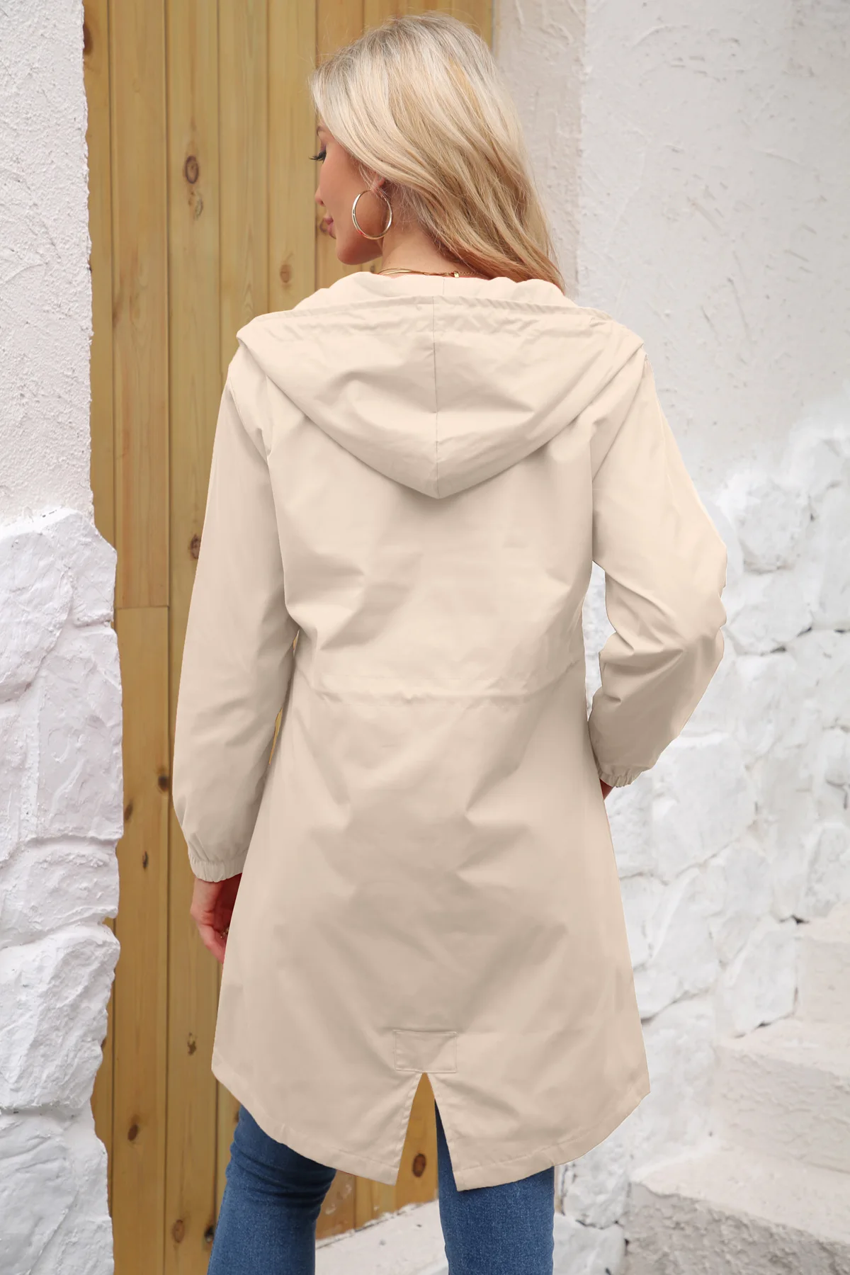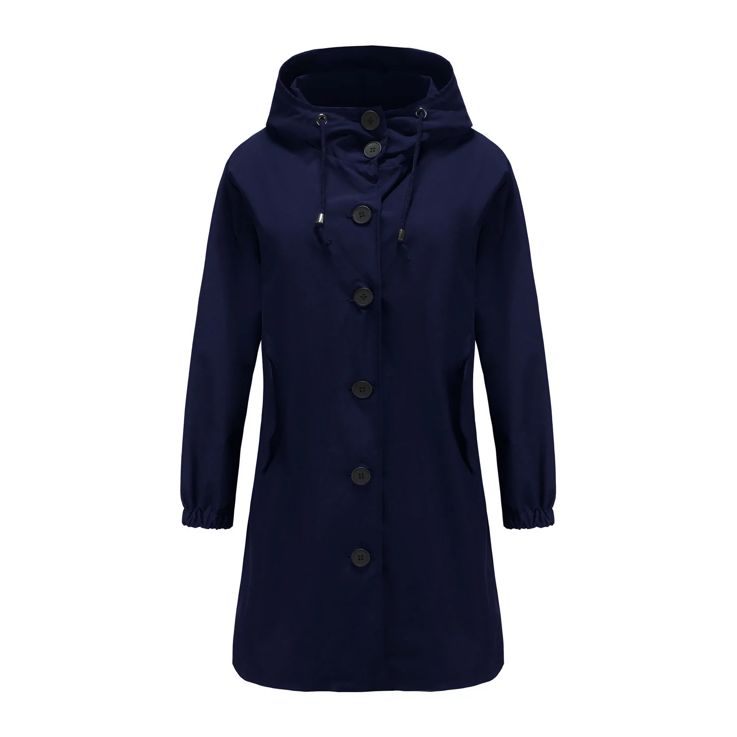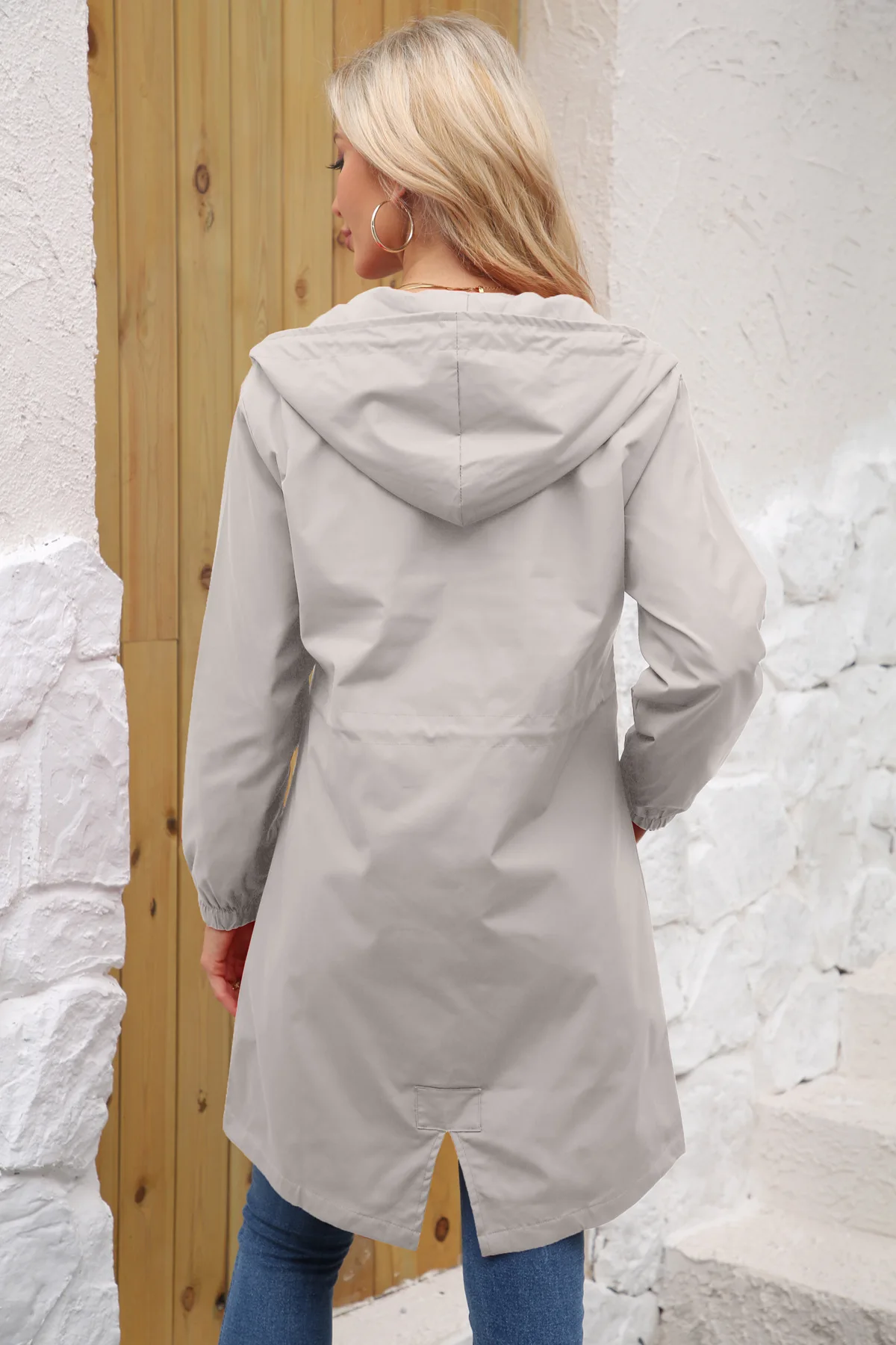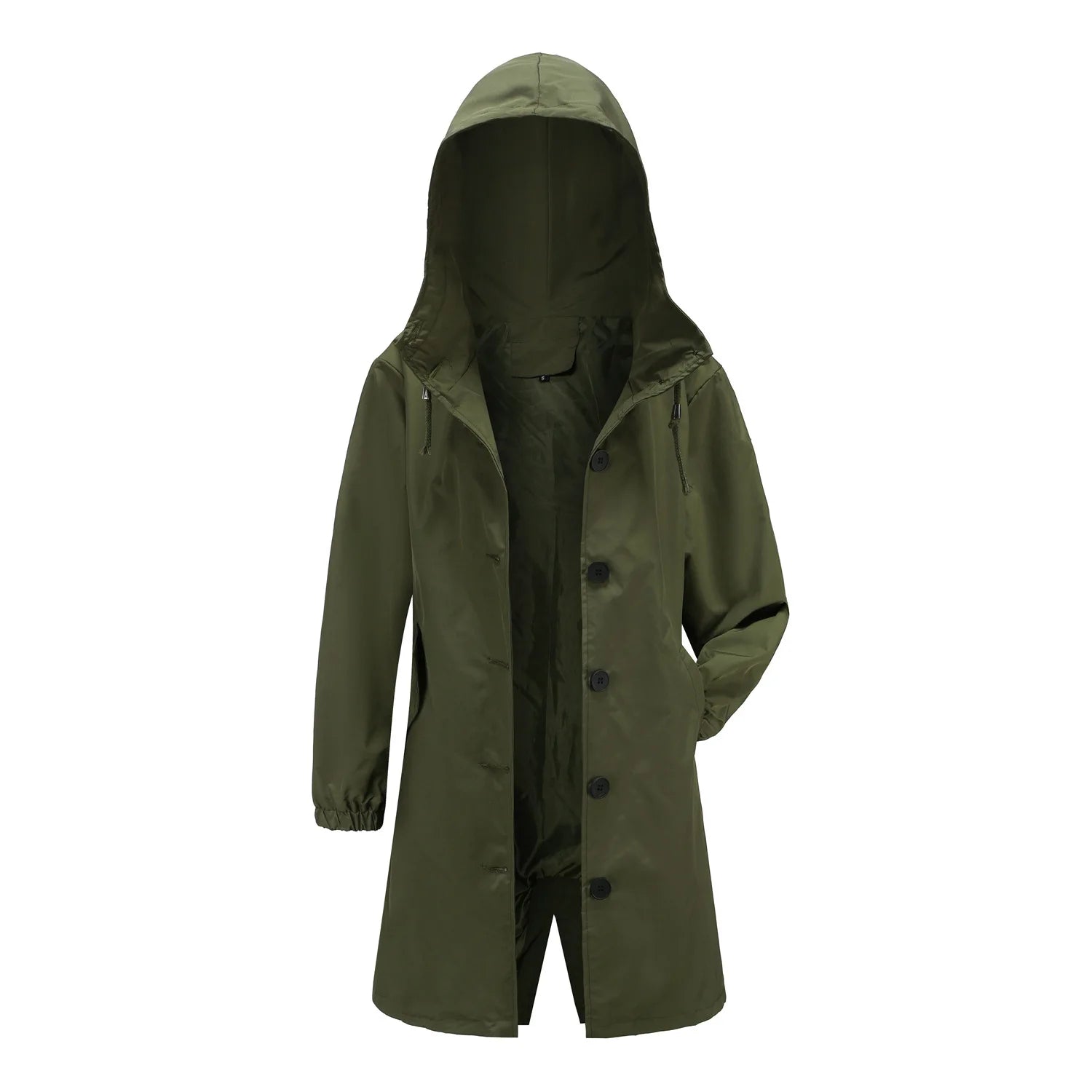 Spring Autumn Women's Trench Coat Water-Repellent Hooded Windbreaker Outdoor Loose Casual Zipper Long Jacket