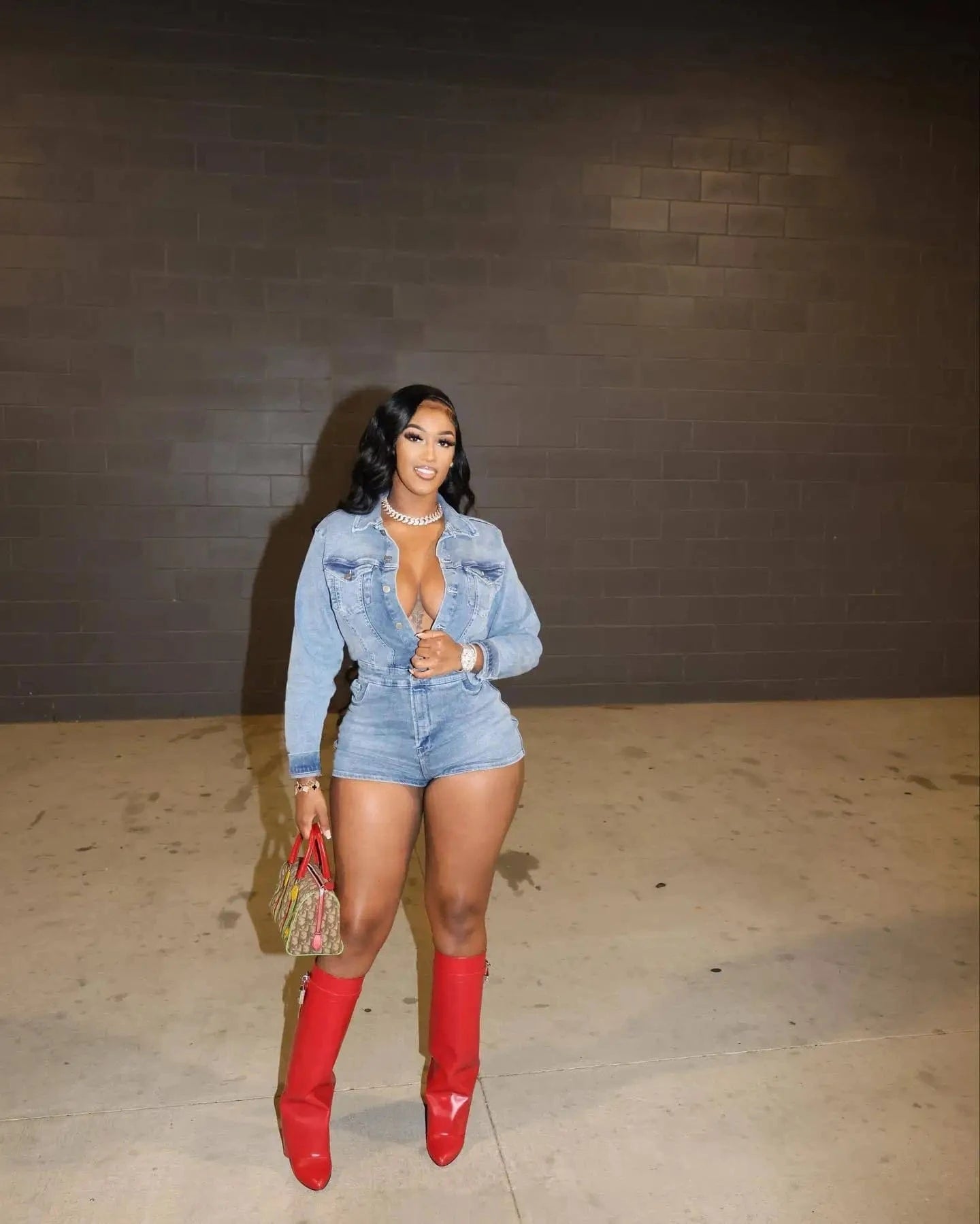 Streetwear Spring Sexy Fashion Long Sleeve Casual One Piece cargo Lady Shorts Washed Denim Jean Romper Women's Short Jumpsuit