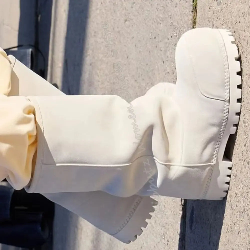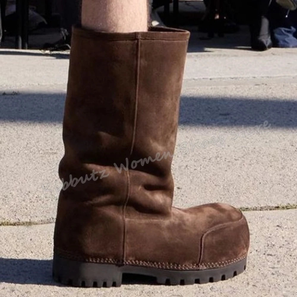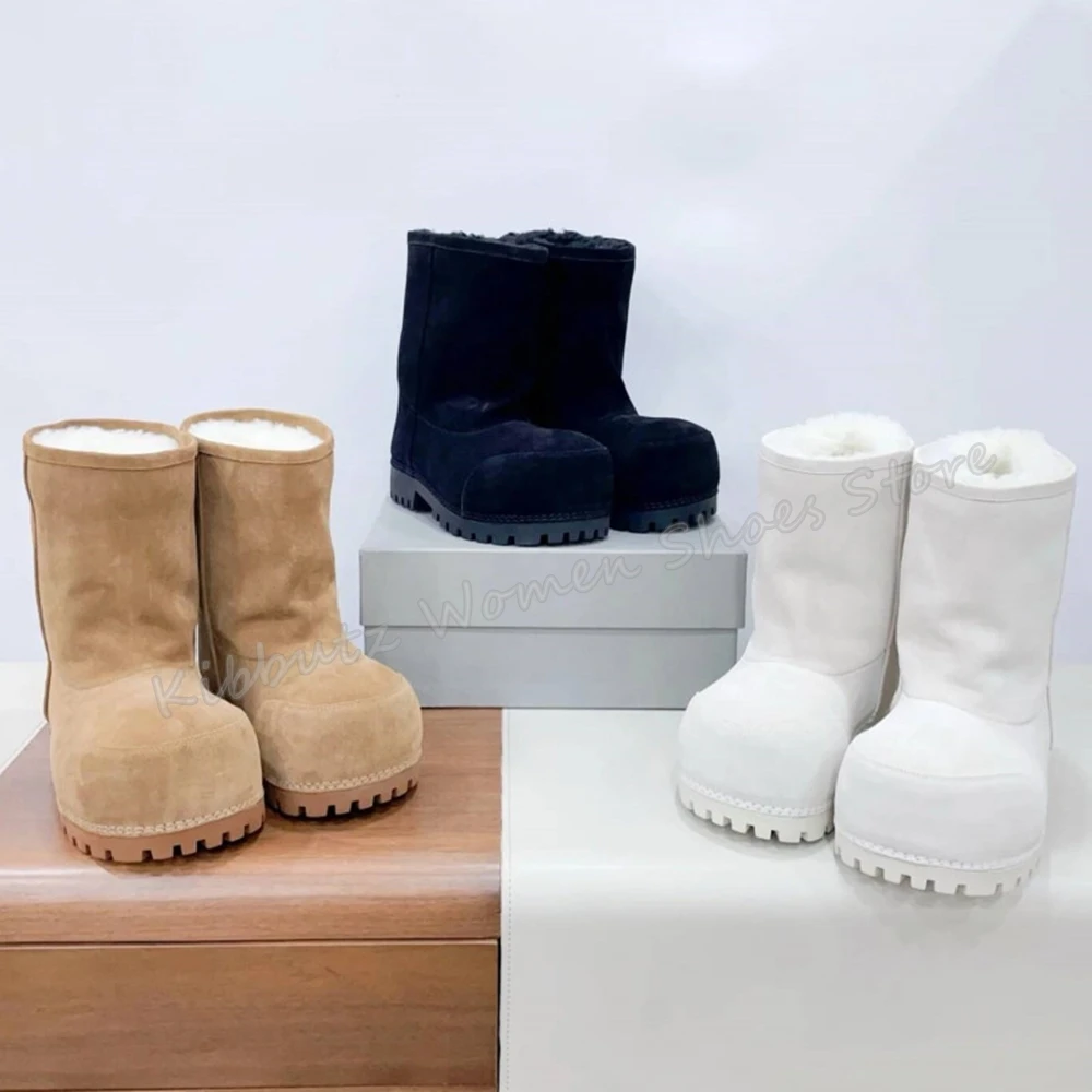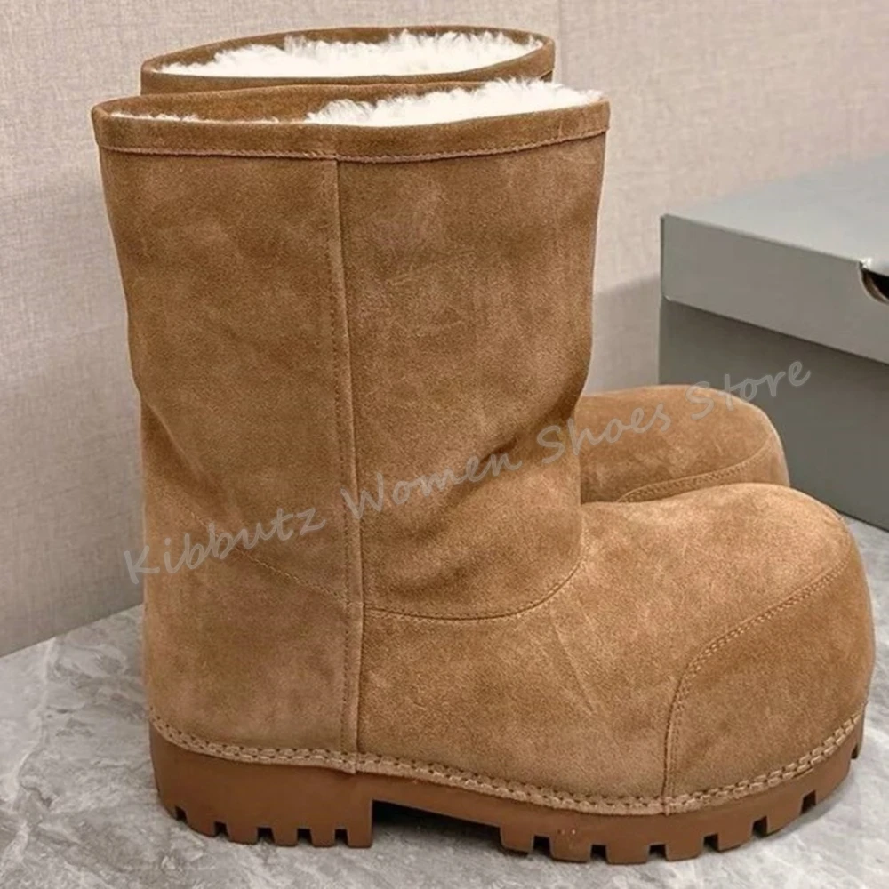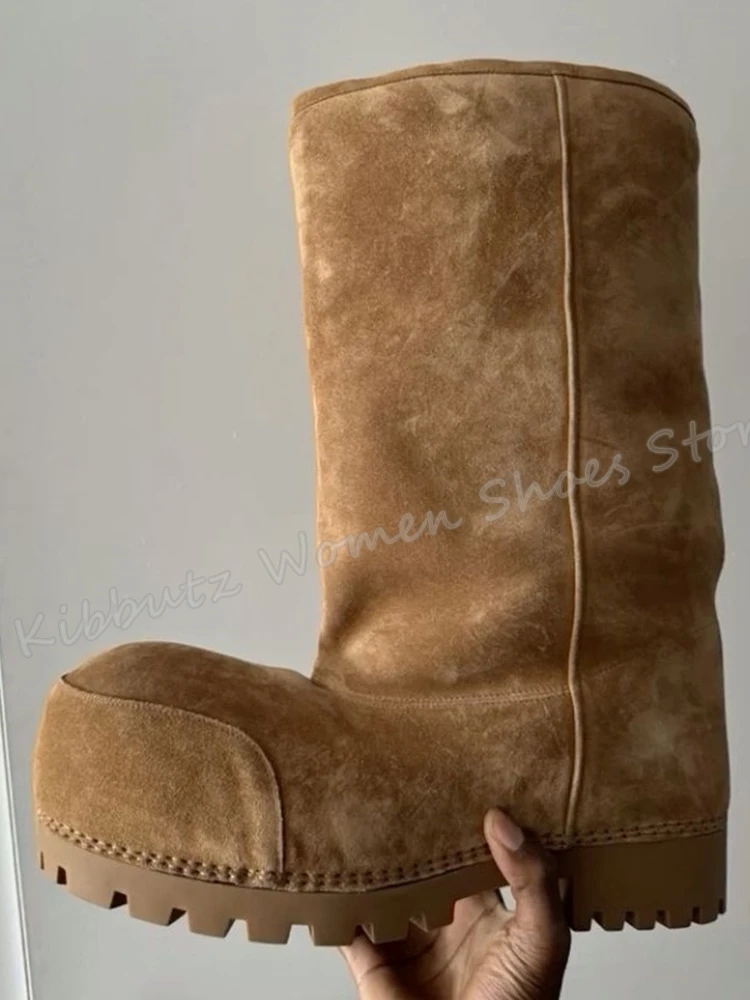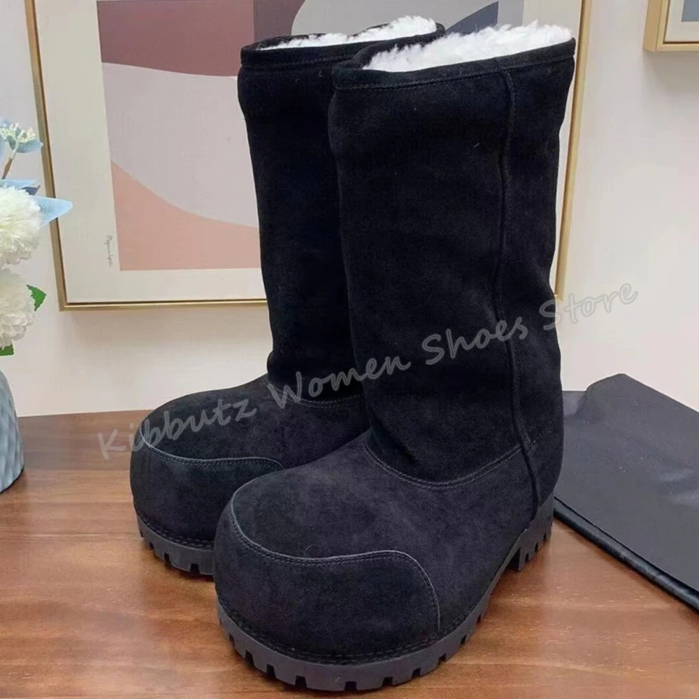 Suede Warm Winter Snow Boots Knee High Big Round Toe Flat With Outdoor Fashion Concise Luxury Sexy Novelty Slip-On Shoes Newest