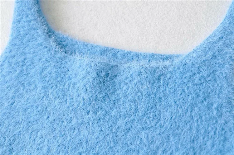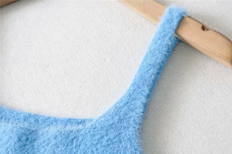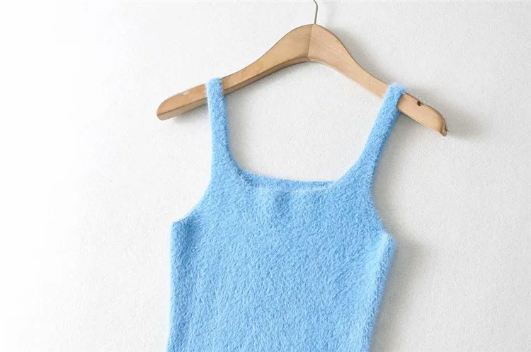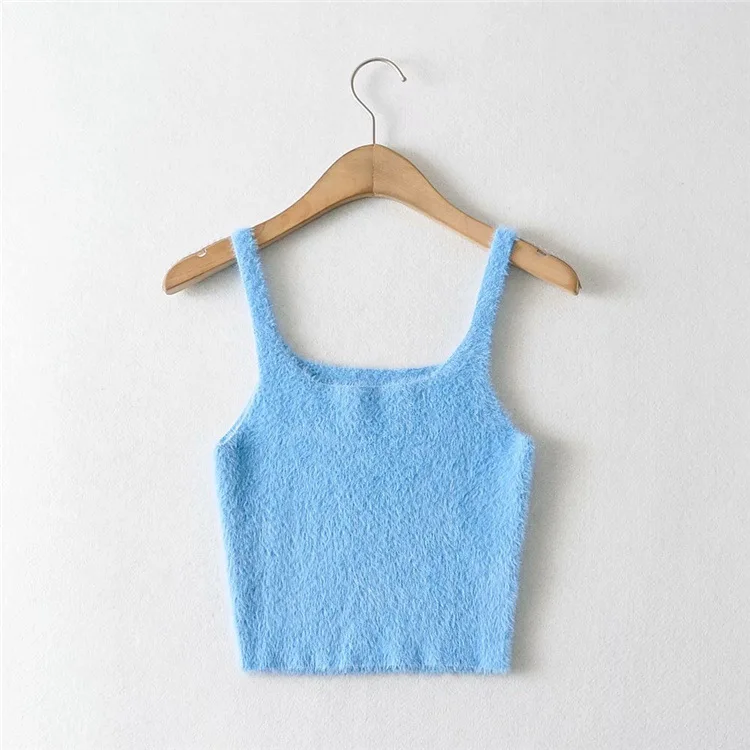 Summer High Quality Crew Neck Pure Candy Color Y2K Plush Knitted Sleeveless Crop Women Tank Tops