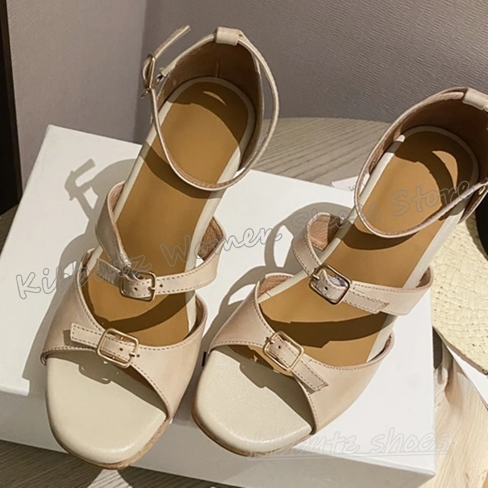 Wedges Sandals Round Toe Belt Buckle Leather Mixed Color Novelty Fashion Elegant Concise Sexy Women Summer Beach Party Shoes New