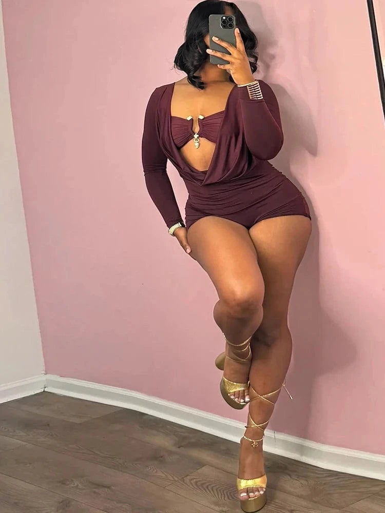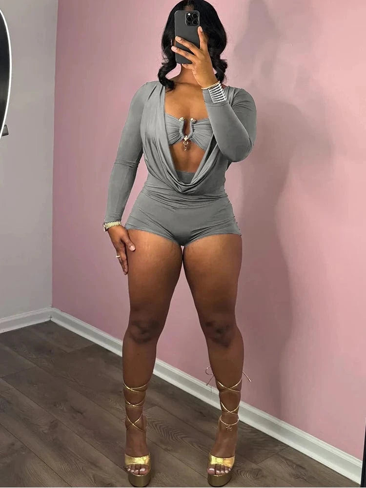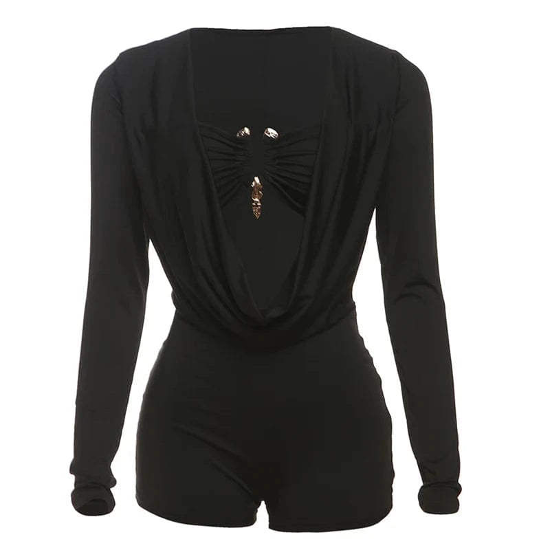 Weird Puss Sexy Women Swing Collar Romper+Metal buckle Bra Hipster Midnight Party Coquette New Spring Trend Workout Playsuits