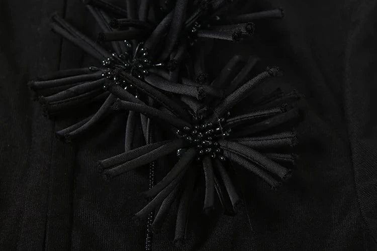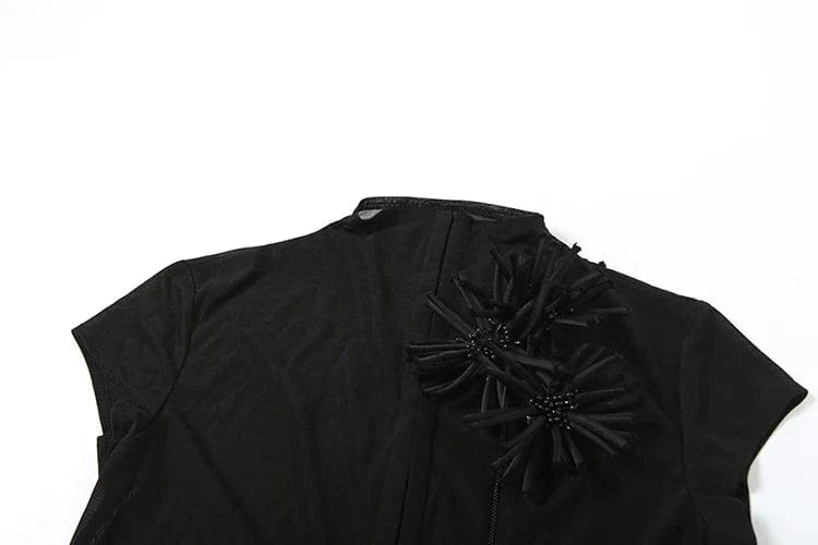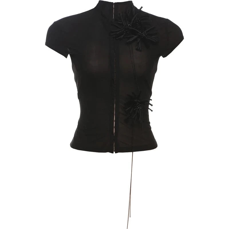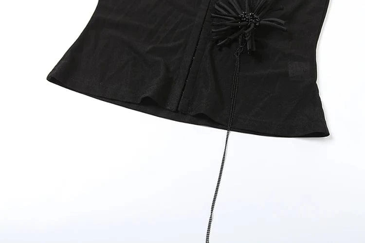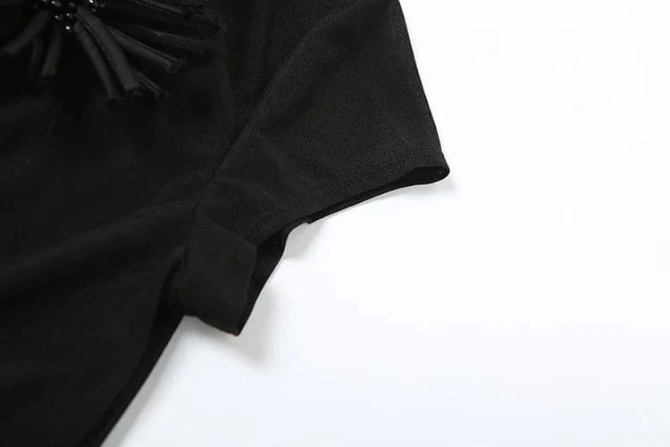 Weird Puss Tassel Applique Crop Tops Women Single-Breasted Half-High Neck Tassel Midnight Hottie Versatile Street Skinny T-Shirt