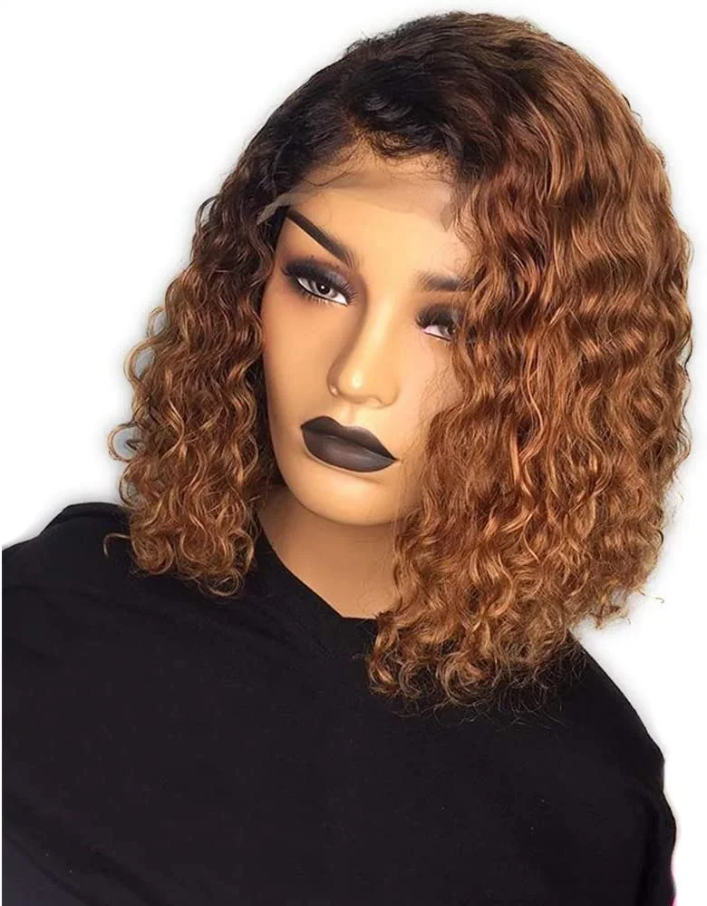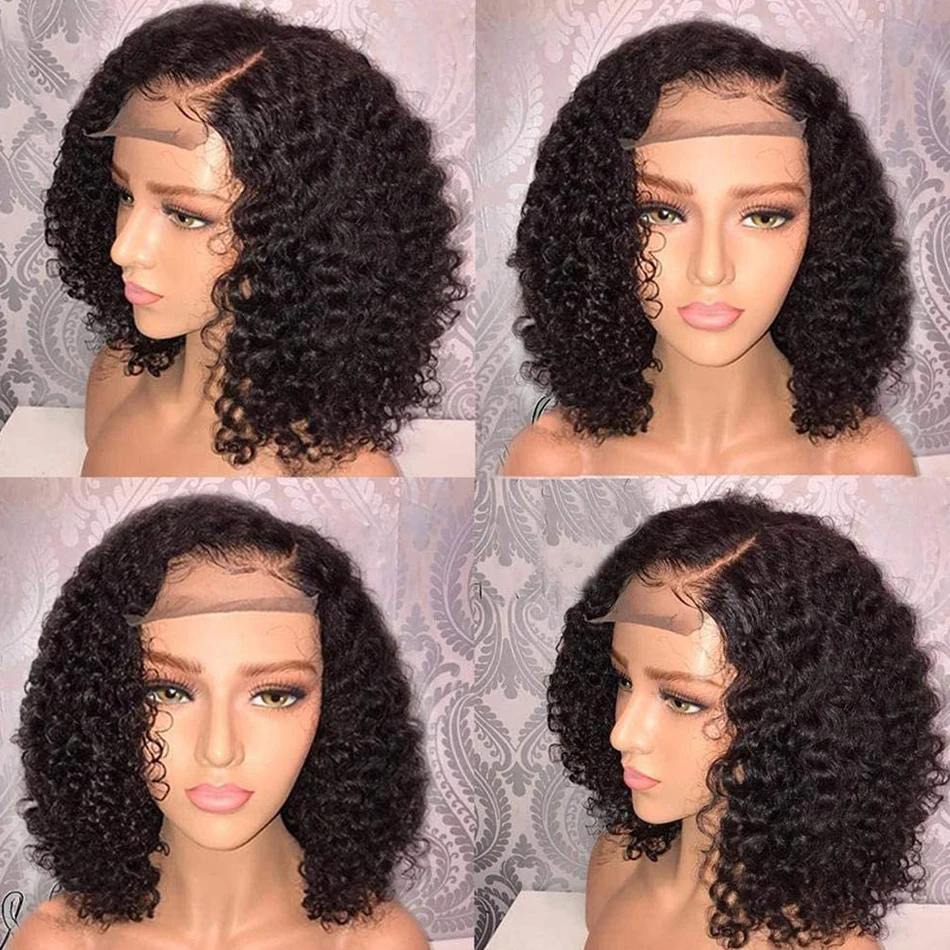Venta al por mayor 4x4 Cierre de encaje Jerry rizado 1b30 Bob peluca rizada de encaje Bob peluca Bob corto pelucas de cabello humano Frontal para mujeres negras