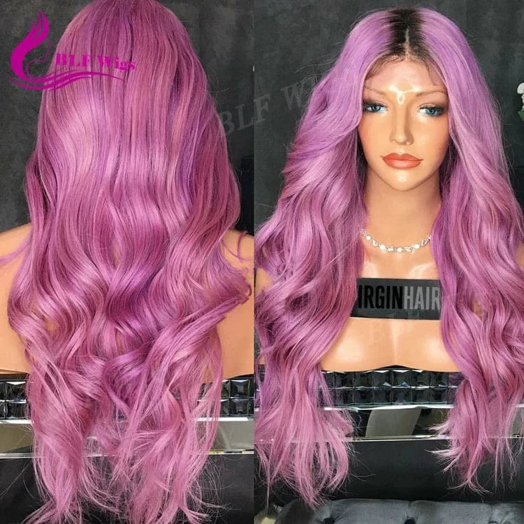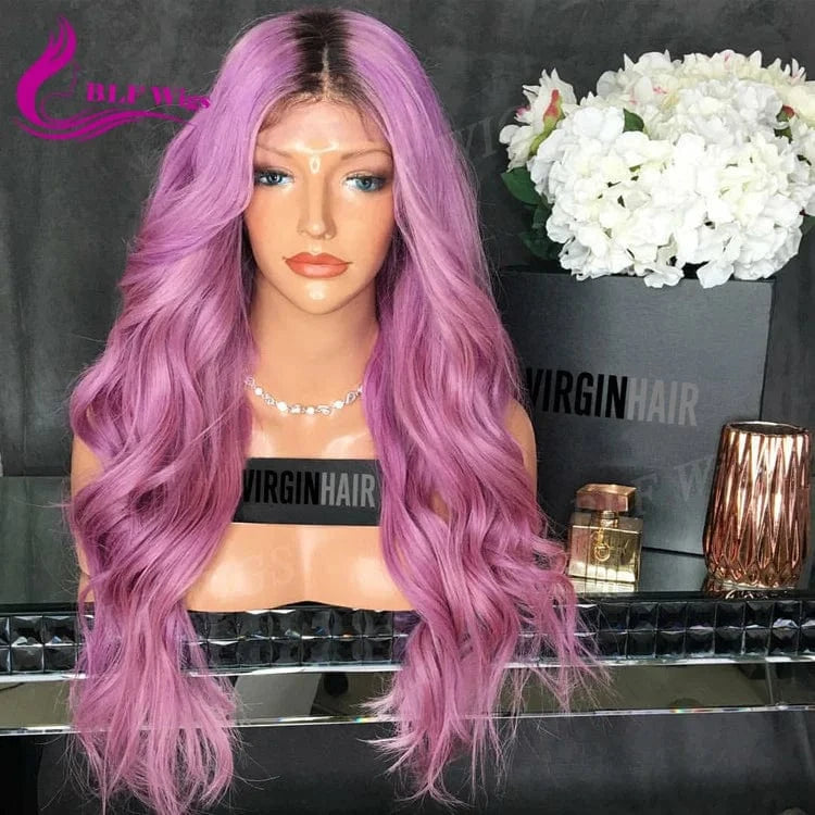 Wholesale 9A Brazilian Hair HD Lace Front Wigs Deep Body Wave Swiss Lace Ombre Purple Human Hair Wig Black Root