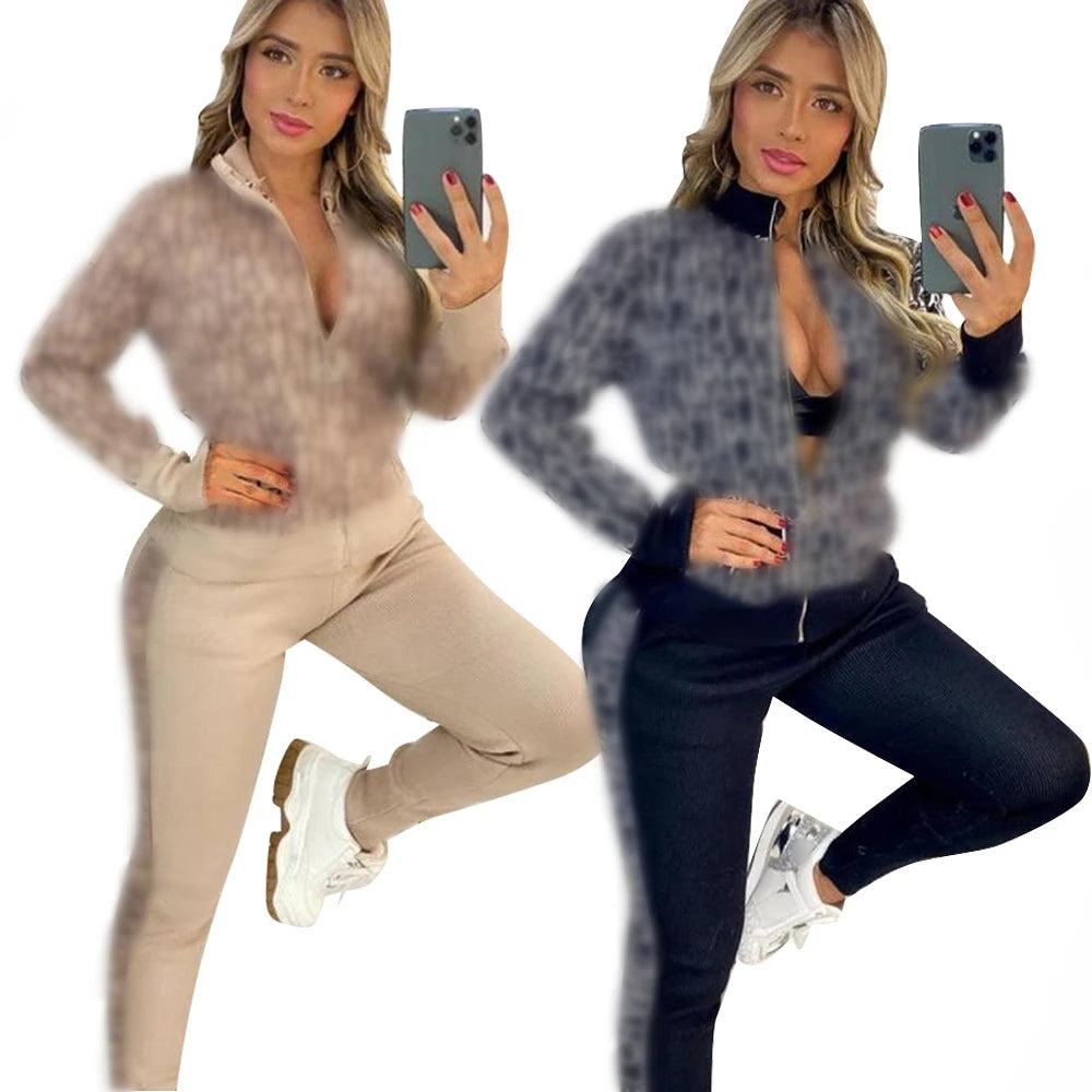 Wholesale designer long sleeve zip up jacket 2 pieces set fashion black two piece pants sets women clothing