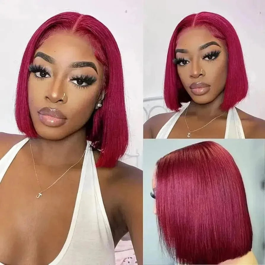 Woman Brazilian Human Hair Lace Front Wigs Highlight Brown Color Straight Human Hair 13X4 Lace Frontal Bob Wigs