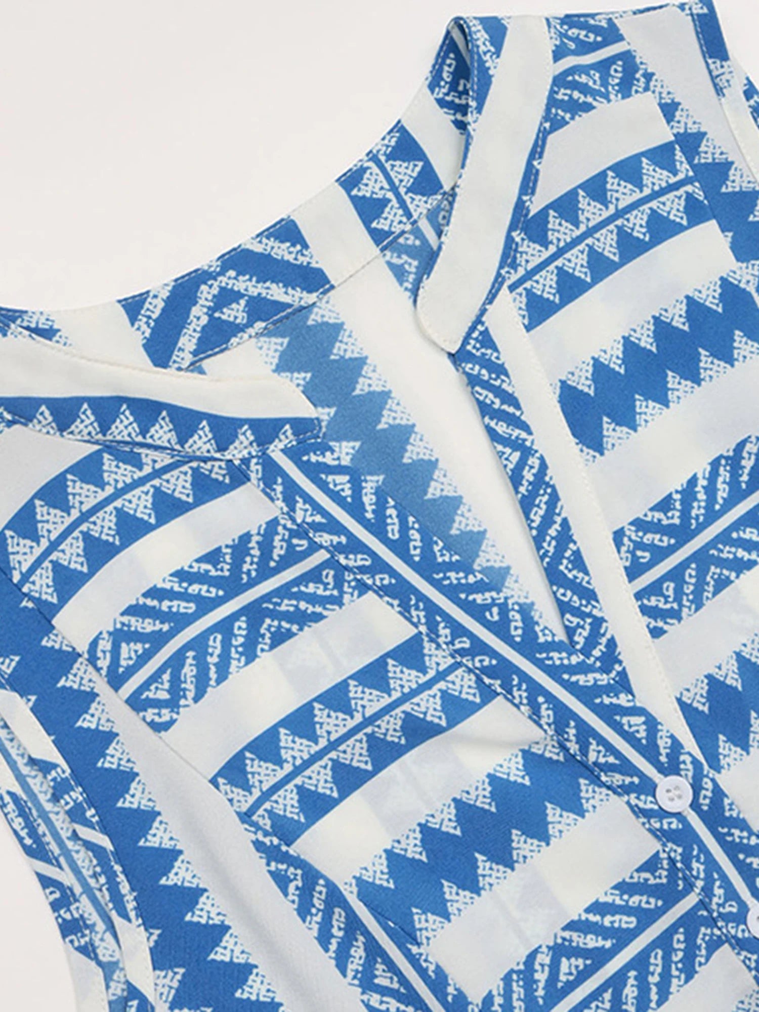 Women Summer Sleeveless Dress Casual Geometric Print Button V-Neck Party Dress for Beach Club StreetwearFeatures