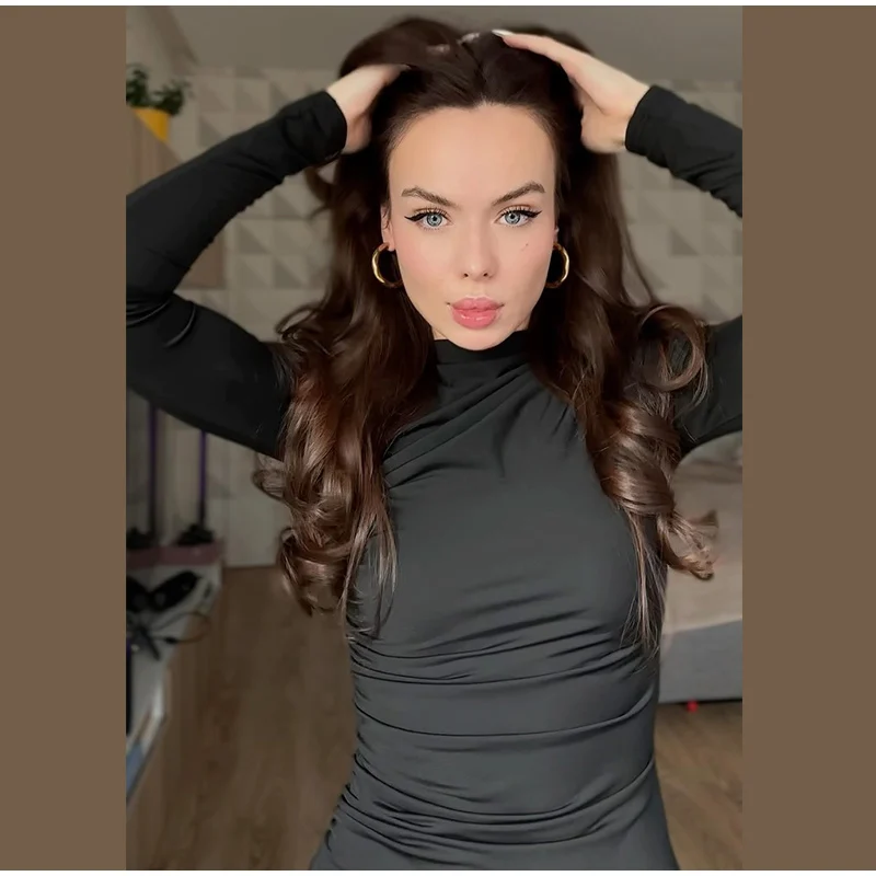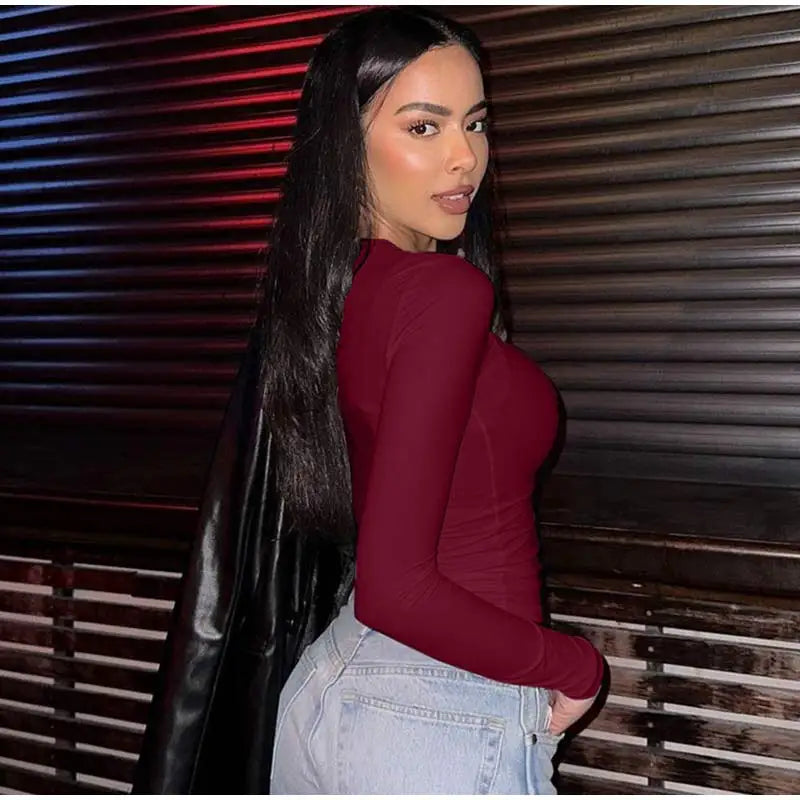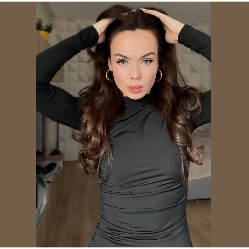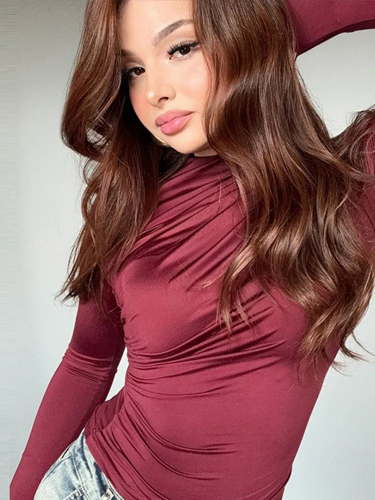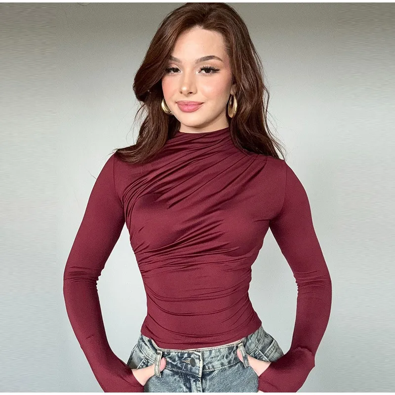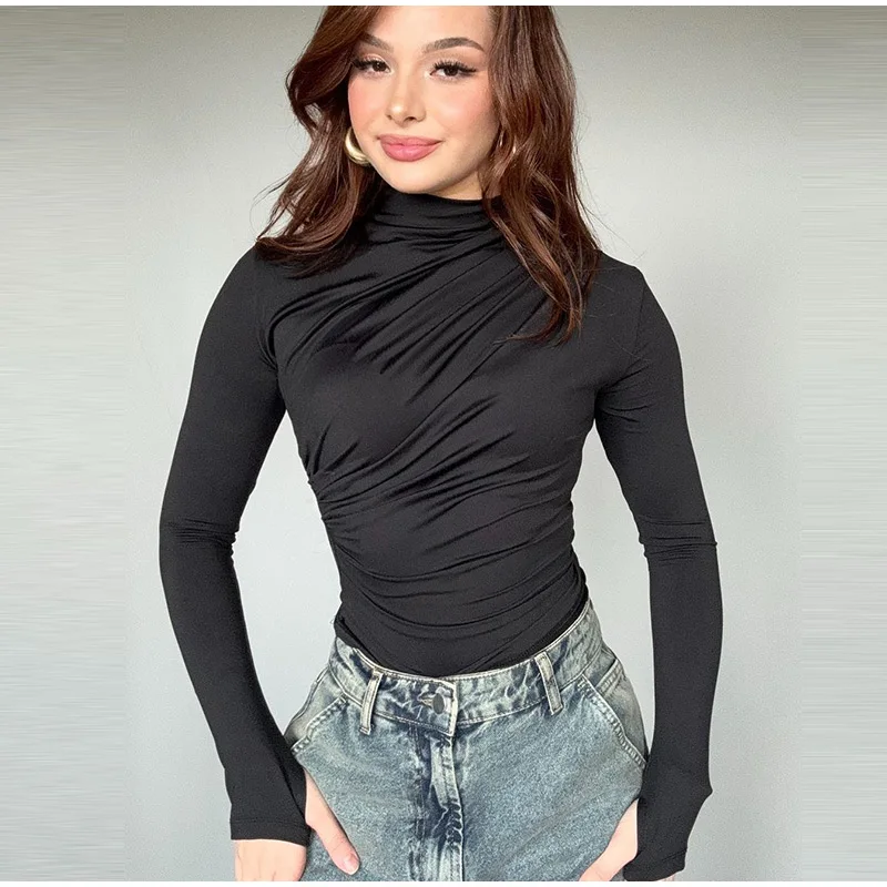 Women Tees Sexy Turtleneck Long Sleeve Pleated All-match Basic Lady T-shirts 2025 Spring Autumn Fashion Chic Female Streetwears