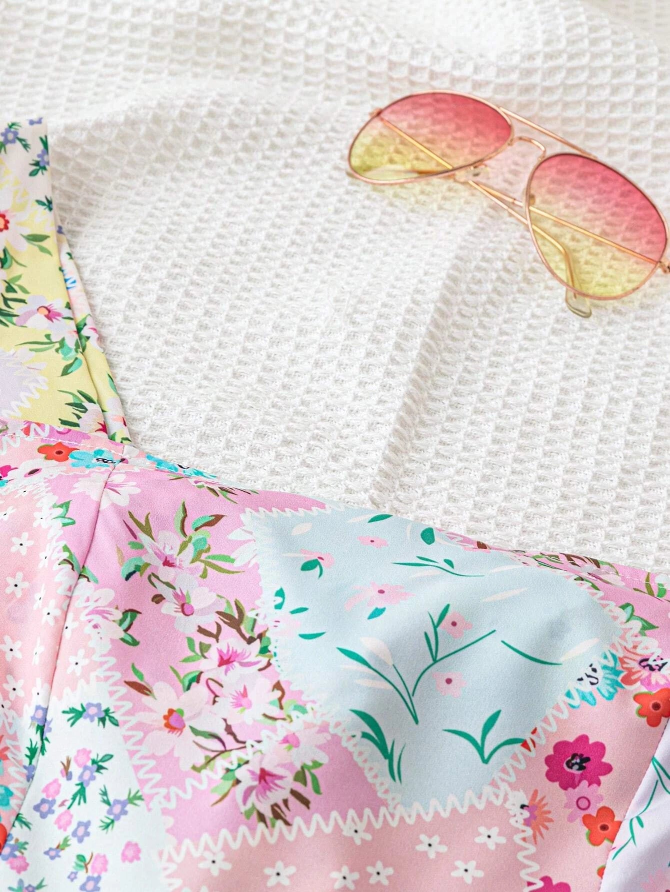 Women's Floral Print Strapless Back Tie Bow Dress 1181