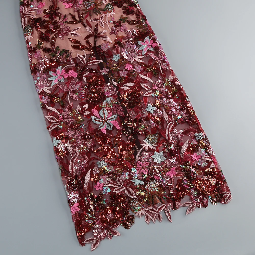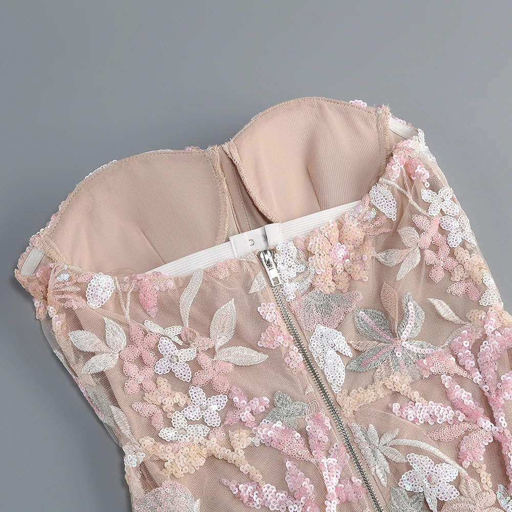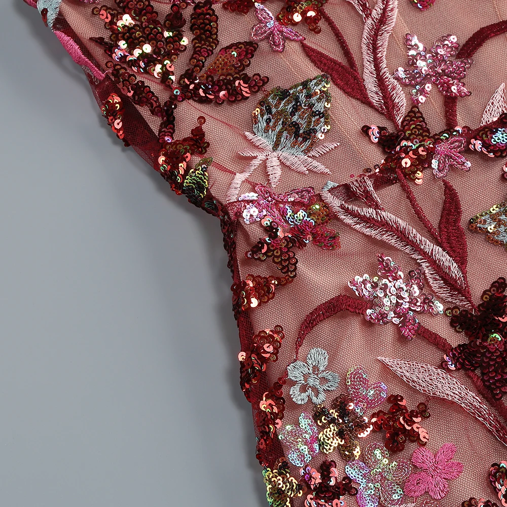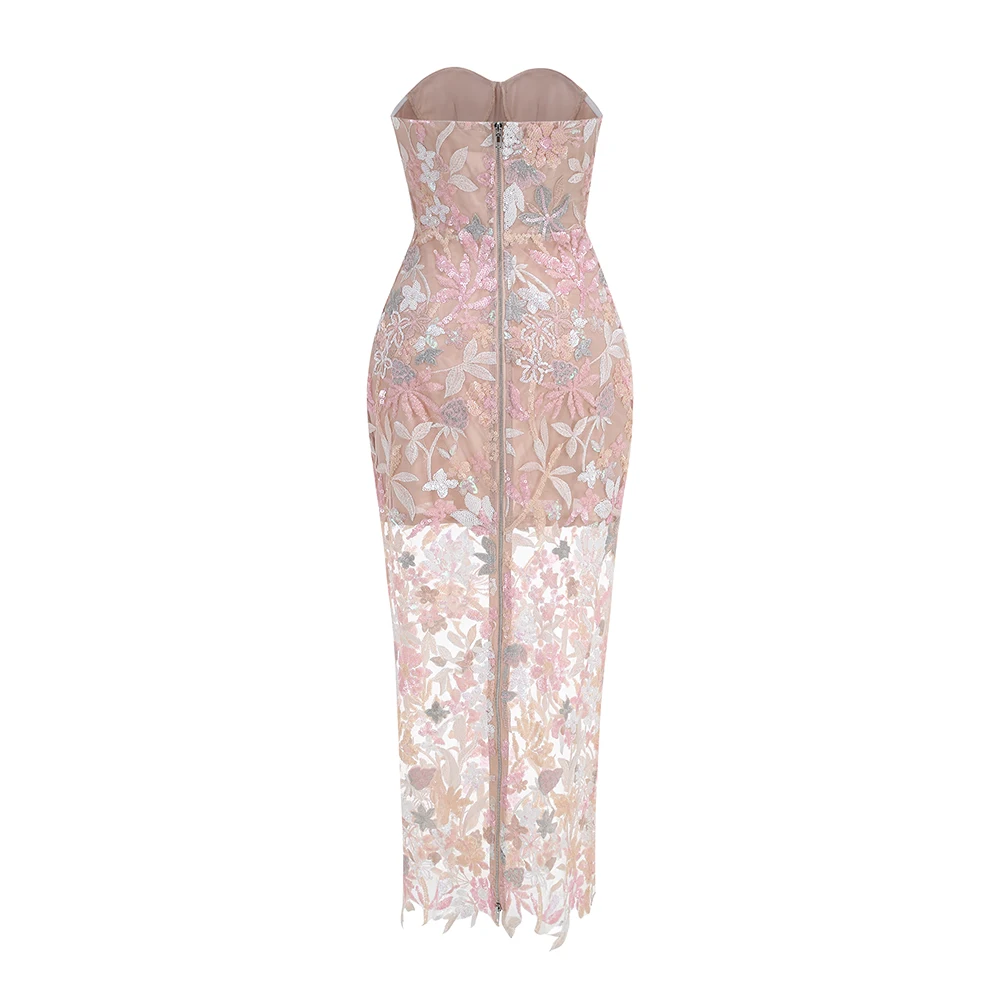 Women's Print One-Line Shoulder Sleeveless Slim Sexy Ankle-Length Dress Lace Embroidery Flowers Colorful Sequins Elegant Dress