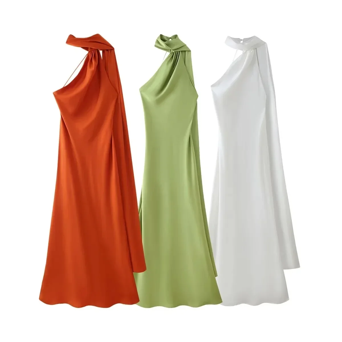 Women's Selling Fast Silk-Satin Feeling Halter Neck Dress European and American Style Sleeveless Summer Fashion Dress
