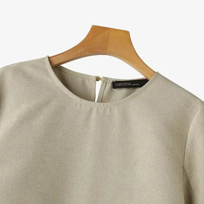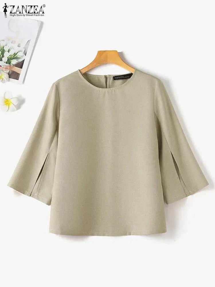 ZANZEA Fashion 3/4 Sleeve Crewneck Blusas Women Solid Blouse Casual Loose Split Cuff Tops 2024 Summer Korean Holiday Tunics