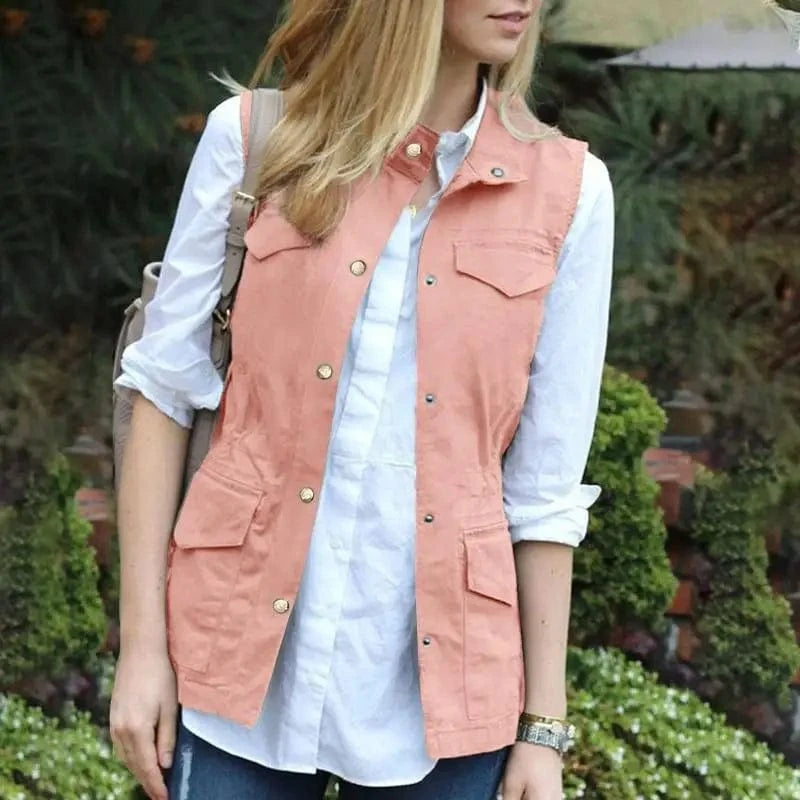 ZANZEA Women Sleeveless Waistcoat Korean Fashion Stand Collar Vest Casual Pockets Solid Tank Outwear 2024 Summer Waist Overalls