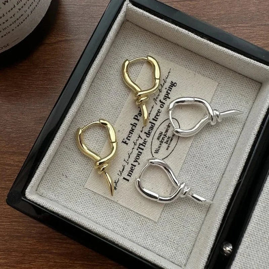 Boucles d'oreilles coréennes rétro en métal doré pour femmes, boucles d'oreilles pendantes géométriques torsadées, créoles, bijoux tendance, cadeaux