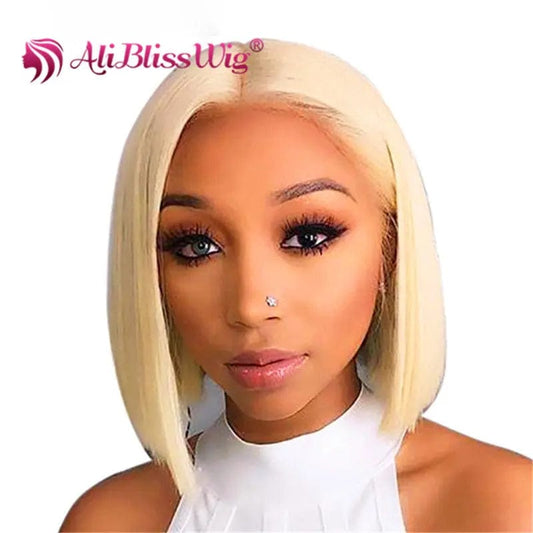 Perruques brésiliennes Remy en cheveux humains blonds T4#613, lisses, ondulées ou bouclées, avec dentelle frontale, pré-épilées, pour femmes