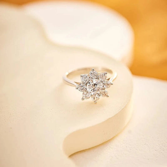 Bague géométrique en forme de tournesol en zircon à haute teneur en carbone plaqué or 18 carats plaqué argent S925 pour femme, accessoire tendance et minimaliste