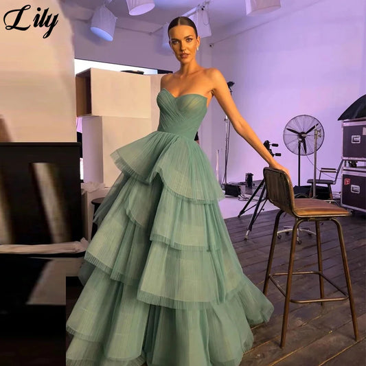Lily Sage Green Sleeveless Long Party Dress Tiered Layer Net Vintage Night Dress Sweetheart Celebrity Dresses vestidos de fiesta