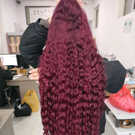 Perruque Lace Front Wig naturelle bouclée bordeaux foncée 99J de bonne qualité, cheveux humains Amara