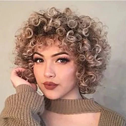 Perruque courte sans colle, cheveux humains Remy blonds crépus bouclés, coupe au carré avec frange, prête à être expédiée, pour femmes noires