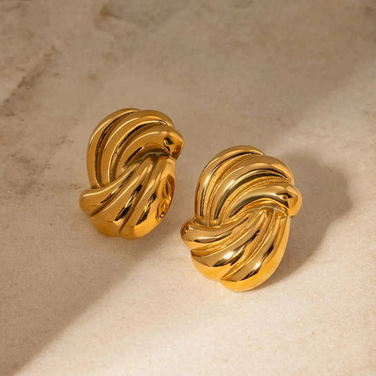 Boucles d'oreilles à tige en acier inoxydable plaqué 18 carats, résistantes à l'eau, motif à clip, boucle texturée, épaisses et lisses, cadeau pour femme, E2688