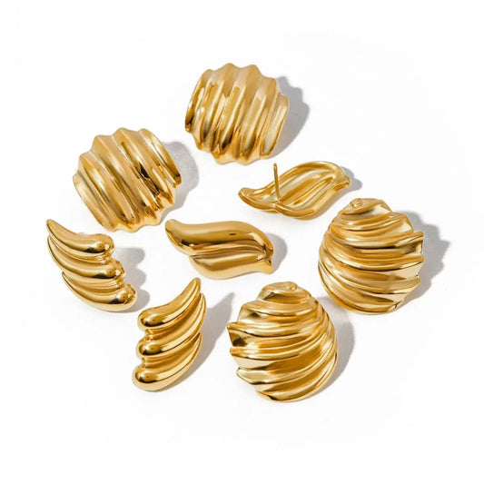 Boucles d'oreilles vintage irrégulières côtelées en acier inoxydable plaqué or 18 carats E2428