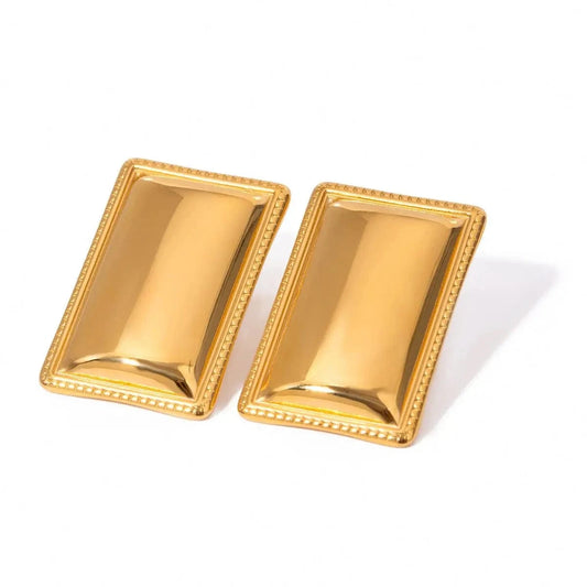 Boucles d'oreilles carrées concaves brillantes en acier inoxydable plaqué or 18 carats E2430