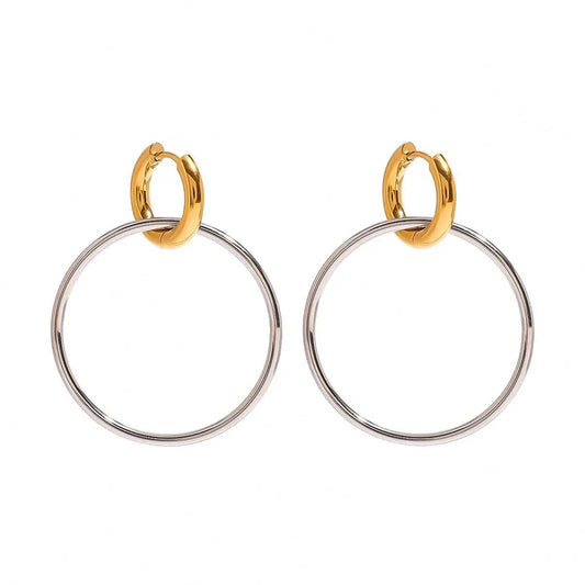 Boucles d'oreilles à anneaux entrelacés en acier inoxydable bicolore, couleur assortie, E2458