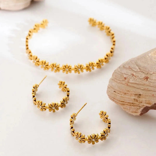 Bracelet ouvert en acier inoxydable plaqué or 18 carats avec marguerite et cristal blanc BG875