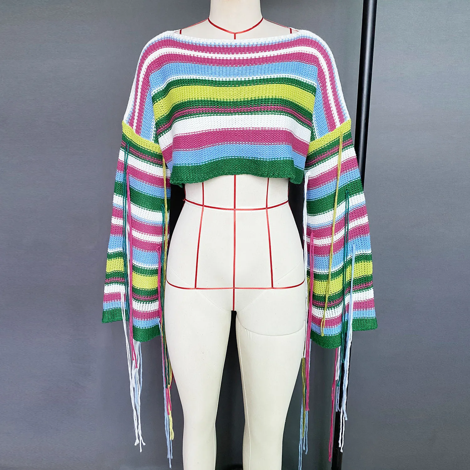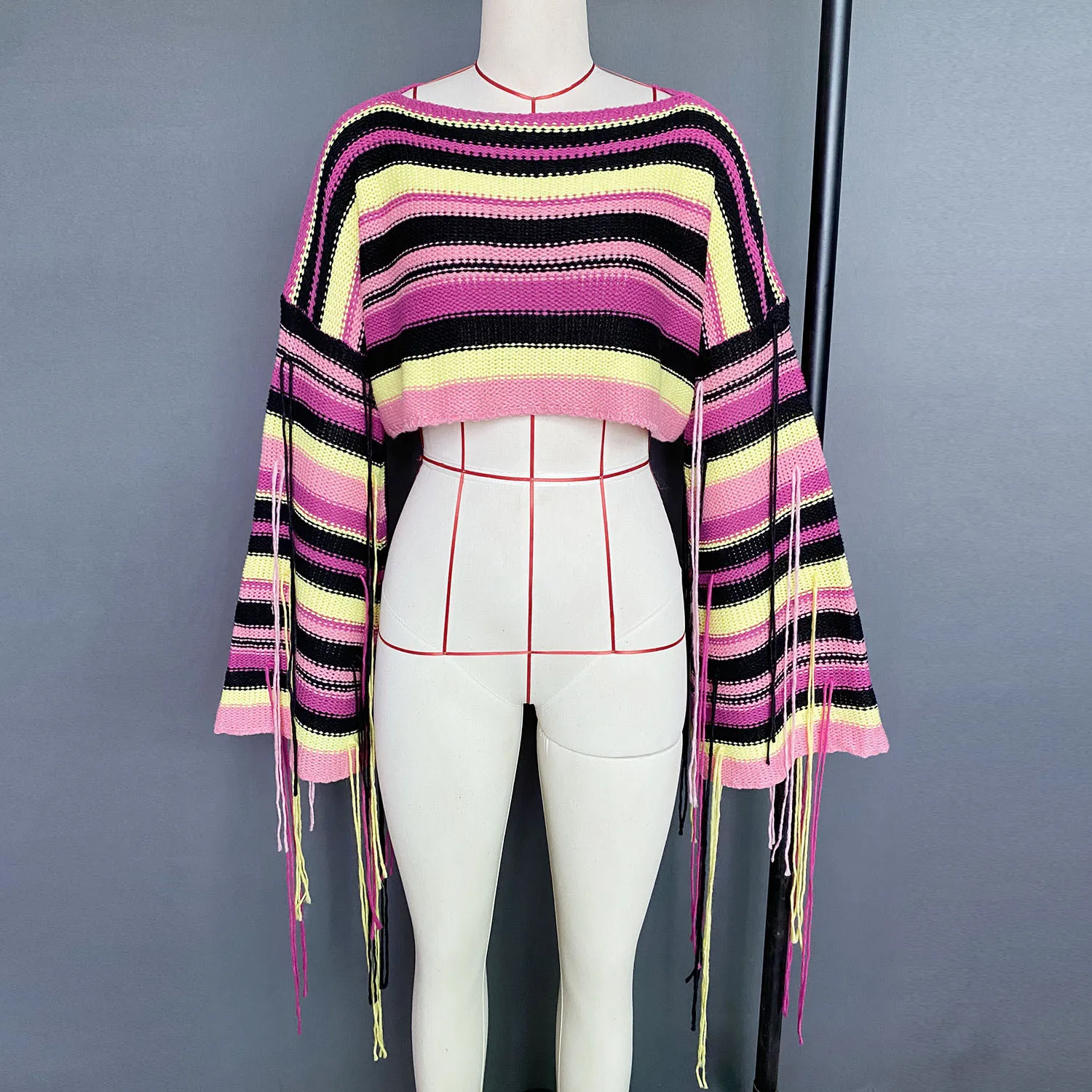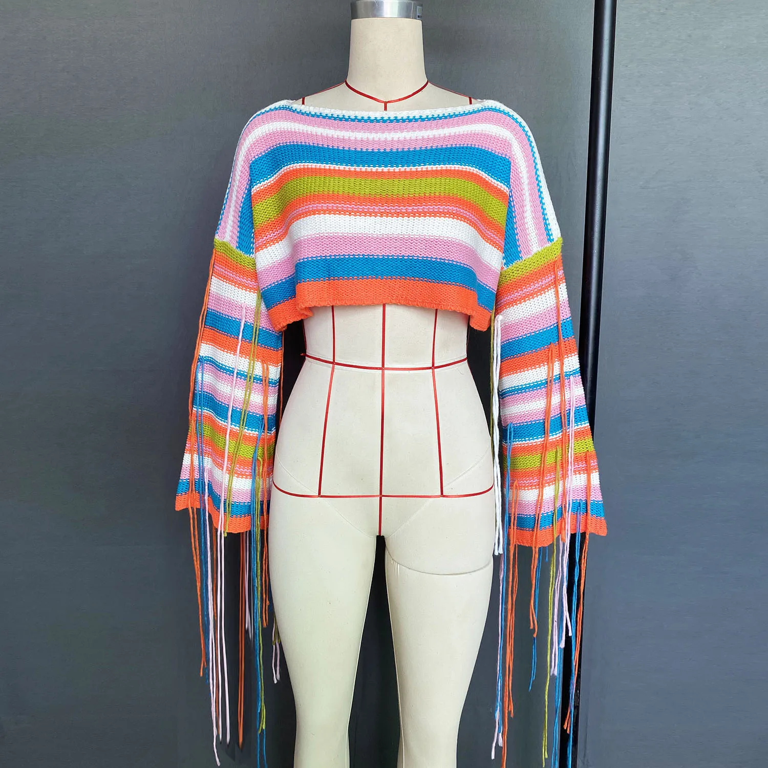 Pull en tricot ample et tendance pour femme, haut à pompons irisés, tendance, automne/hiver 2024