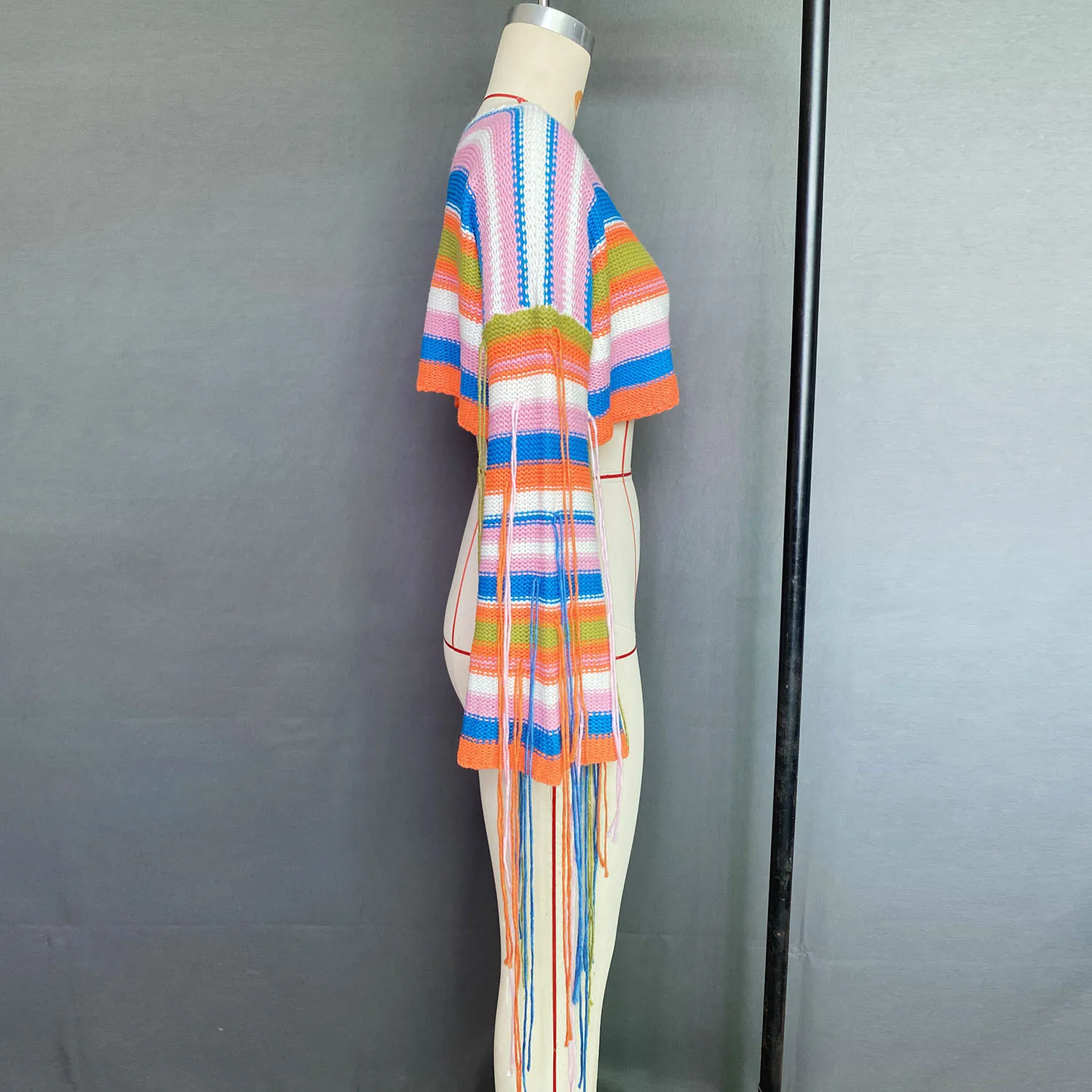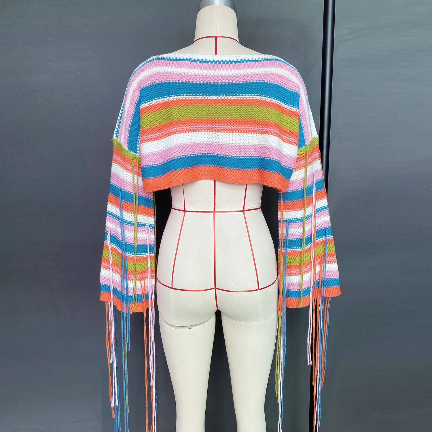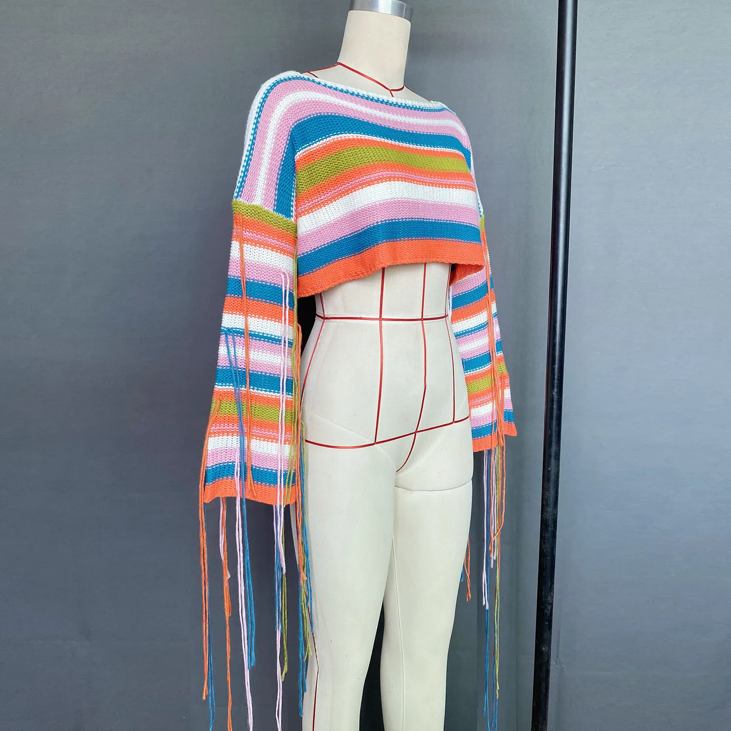 Pull en tricot ample et tendance pour femme, haut à pompons irisés, tendance, automne/hiver 2024