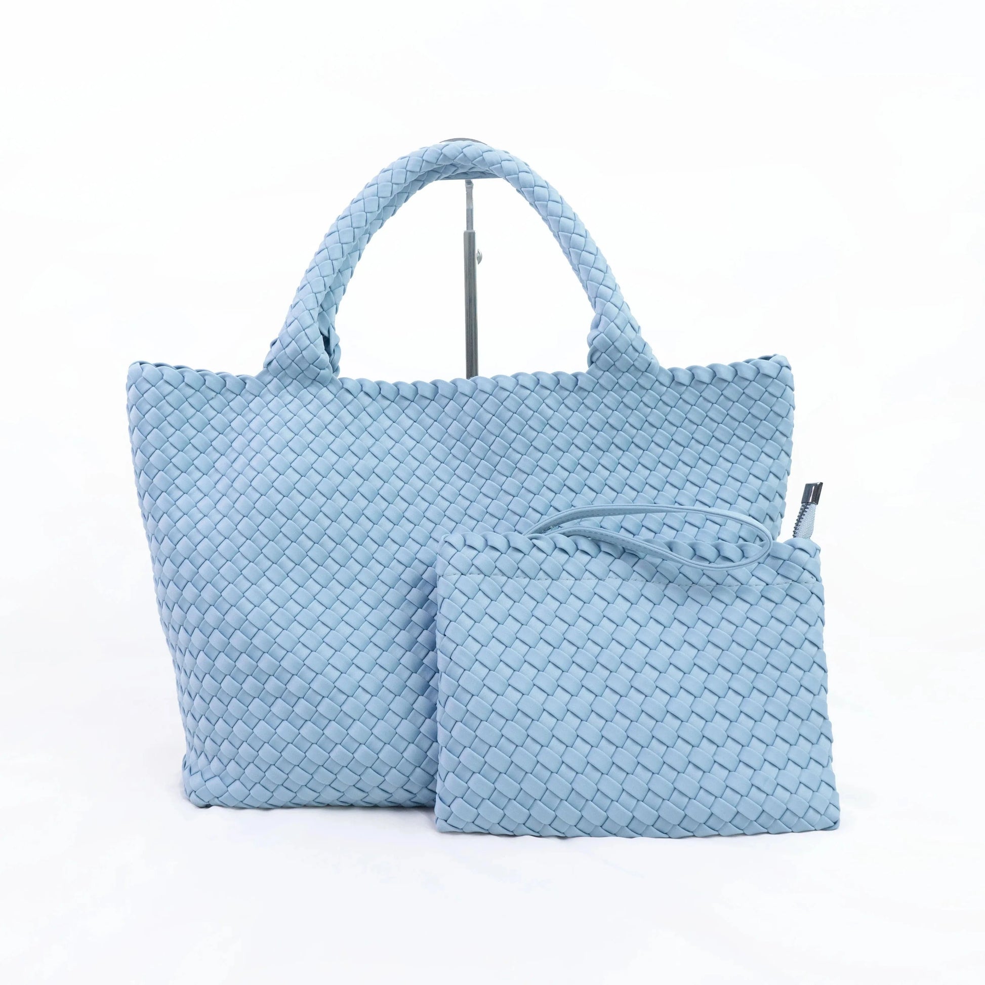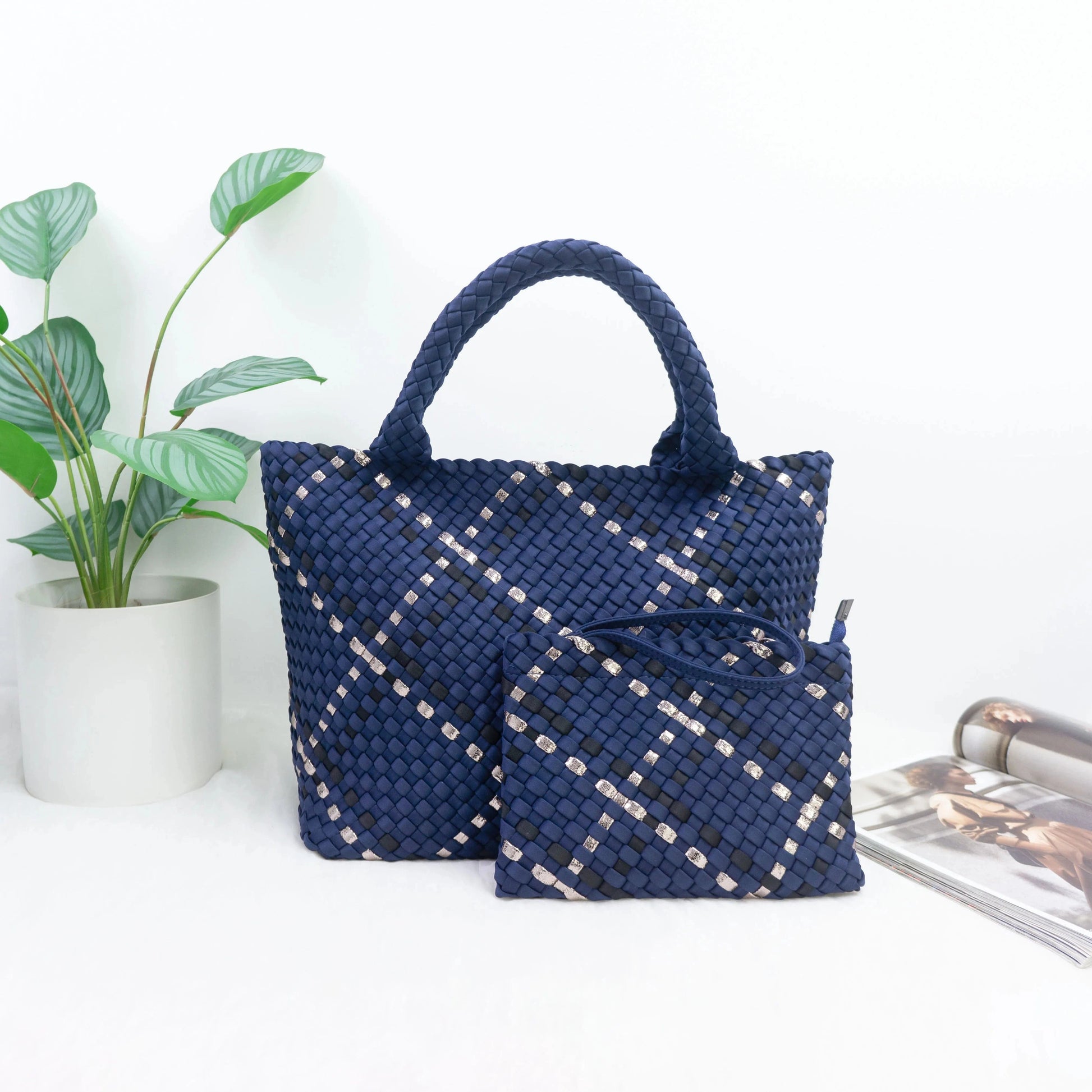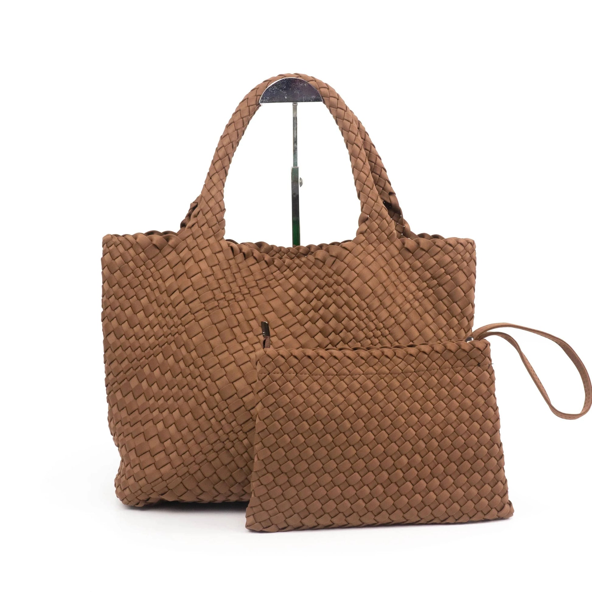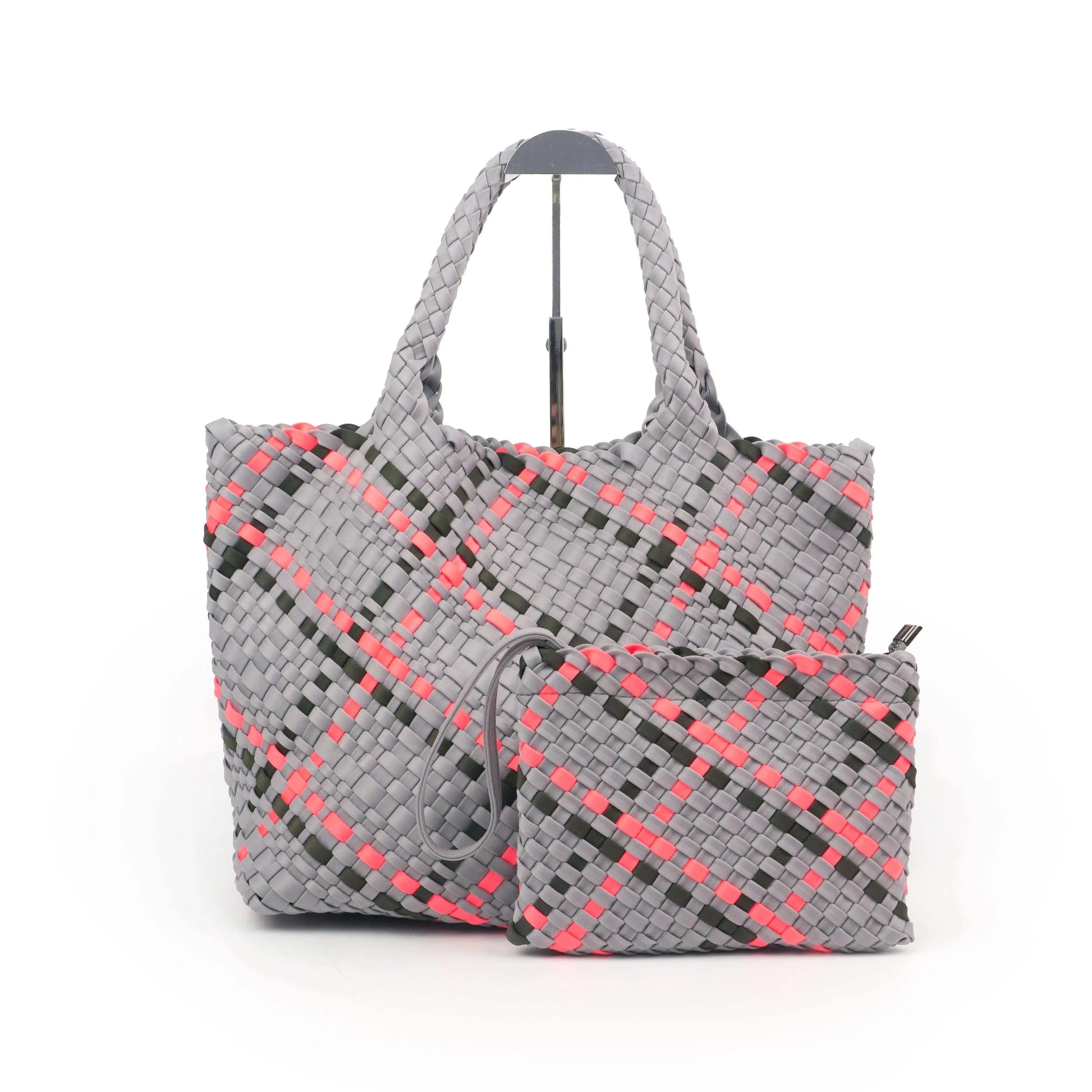 Sacs fourre-tout tissés en néoprène 2024, sac à bandoulière en néoprène tissé, sac de plage avec petite pochette, sac personnalisé