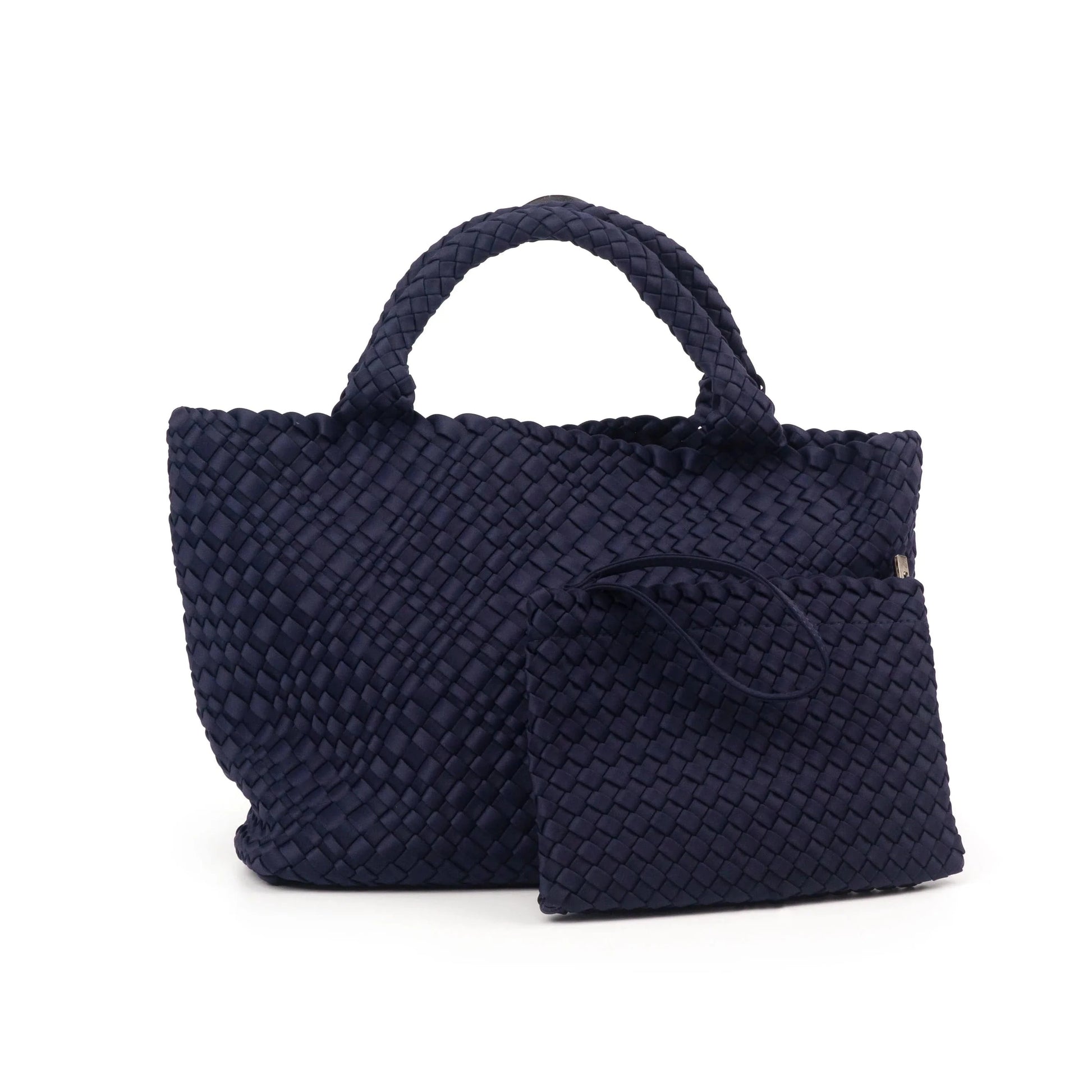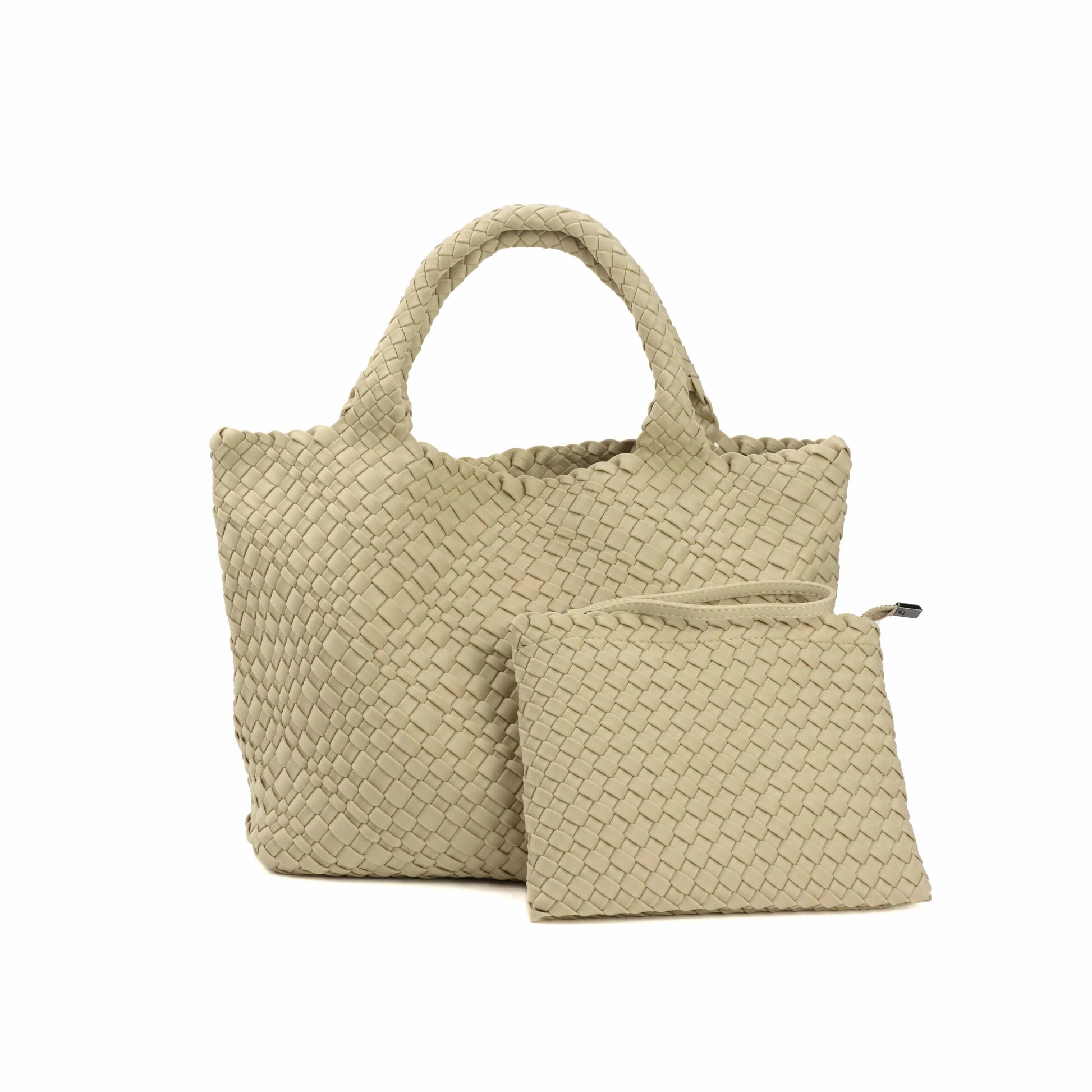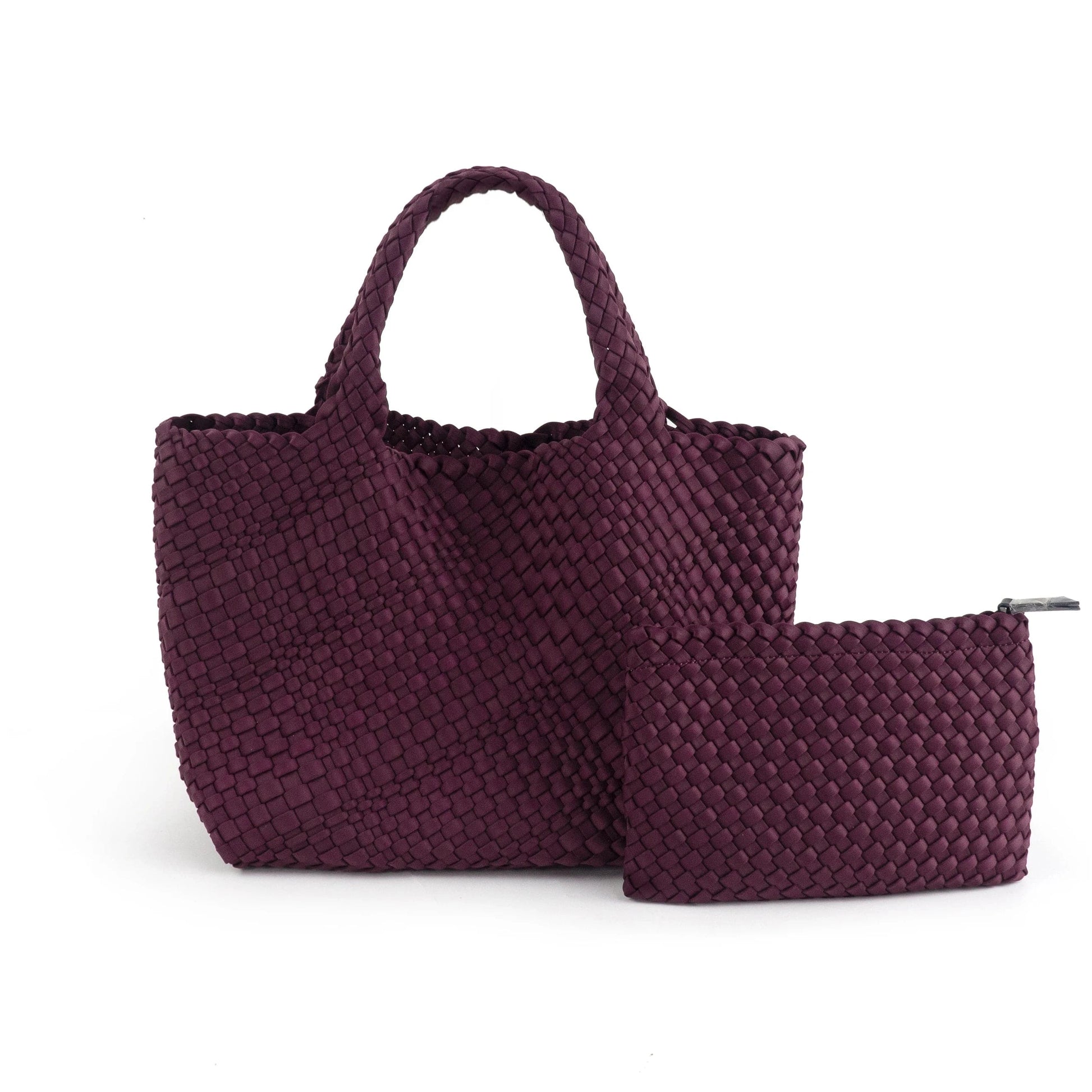 Sacs fourre-tout tissés en néoprène 2024, sac à bandoulière en néoprène tissé, sac de plage avec petite pochette, sac personnalisé
