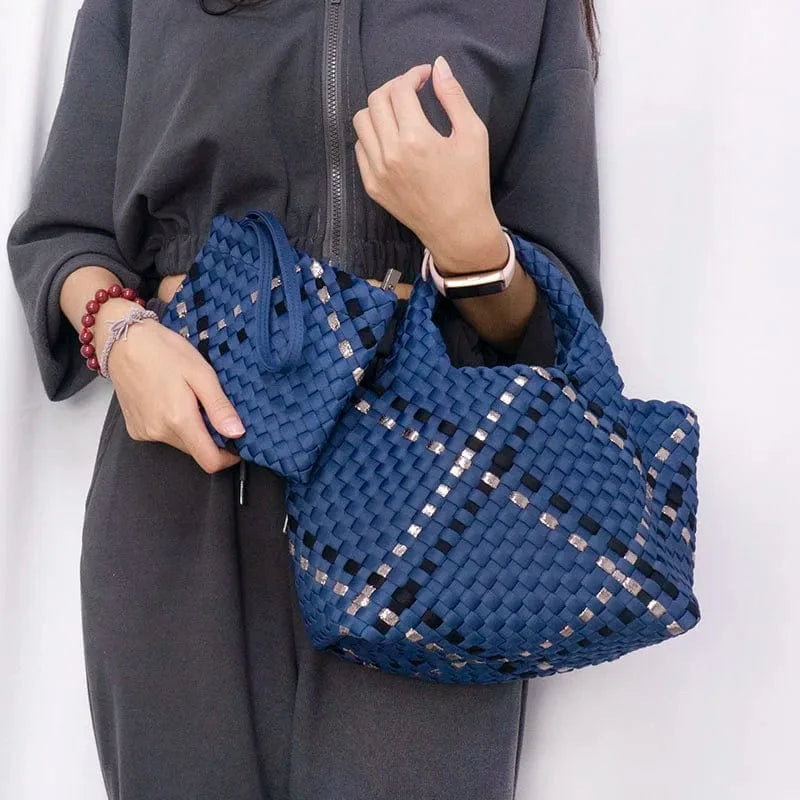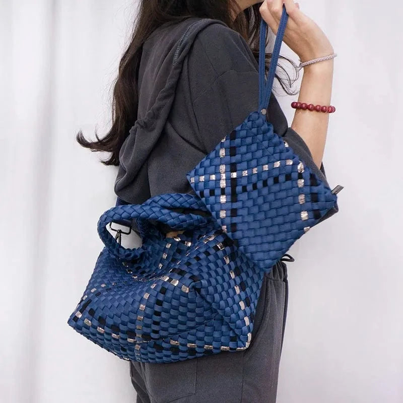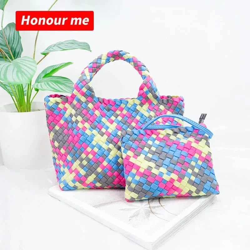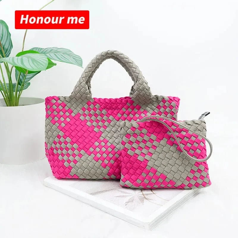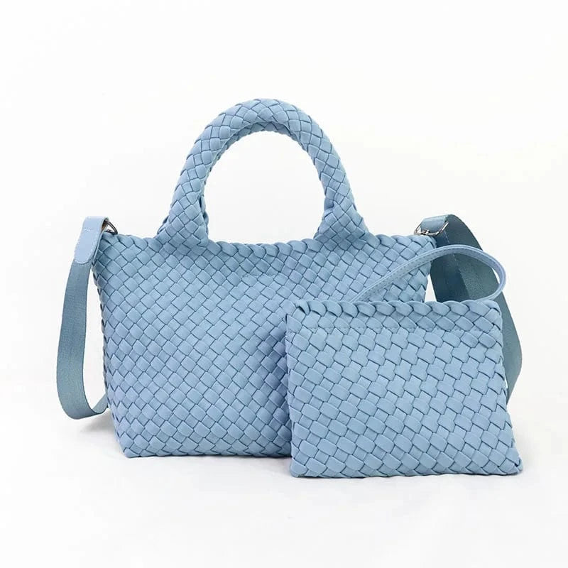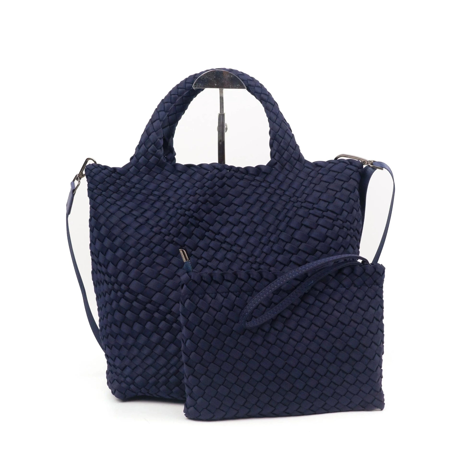 Sacs fourre-tout tissés en néoprène 2024, sac à bandoulière en néoprène tissé, sac de plage avec petite pochette, sac personnalisé