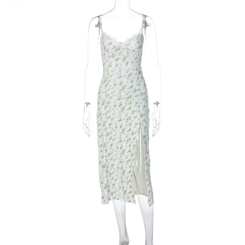 Robe d'été décontractée sans manches et sans col pour femme, nouvelle mode 2024, coupe trapèze, motif floral, fendue, en fibre de lait