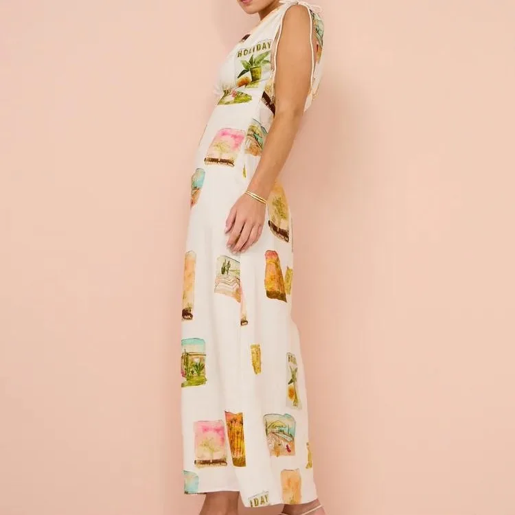 Robe d'été 2024 pour femmes, nouvelle collection européenne et américaine, imprimée, col en V, à lacets, élégante, sans manches, taille haute