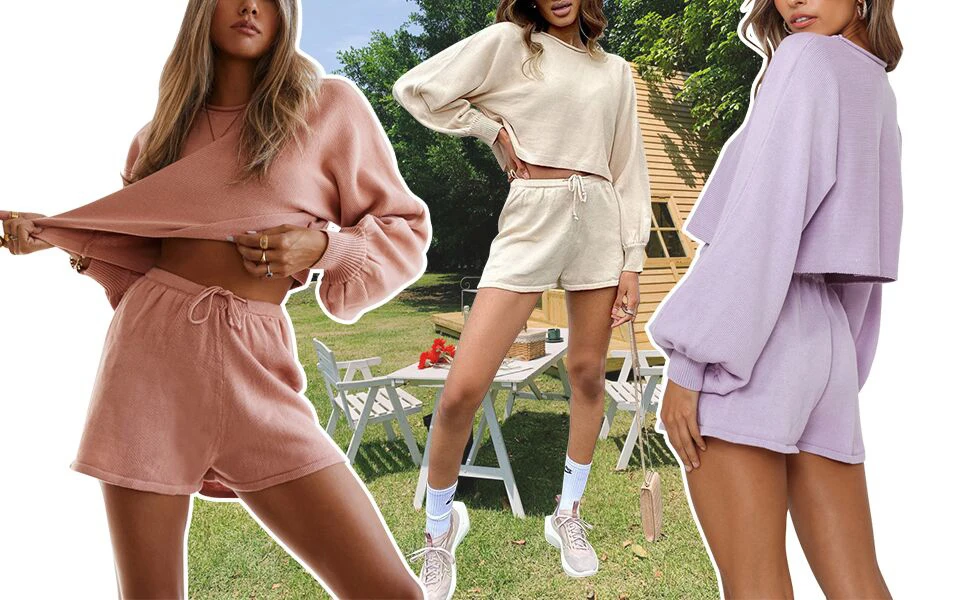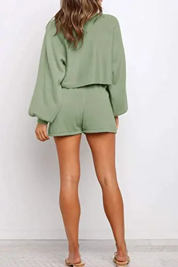 Ensemble de survêtement décontracté à manches longues et couleur unie, pull-over en tricot, 2 pièces, pull court, 2024