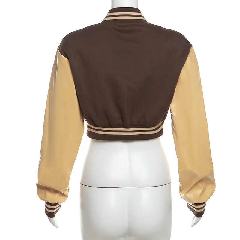 Manteau à manches longues et boutons pour femme, veste de baseball courte et sexy, patchwork, printemps 2024