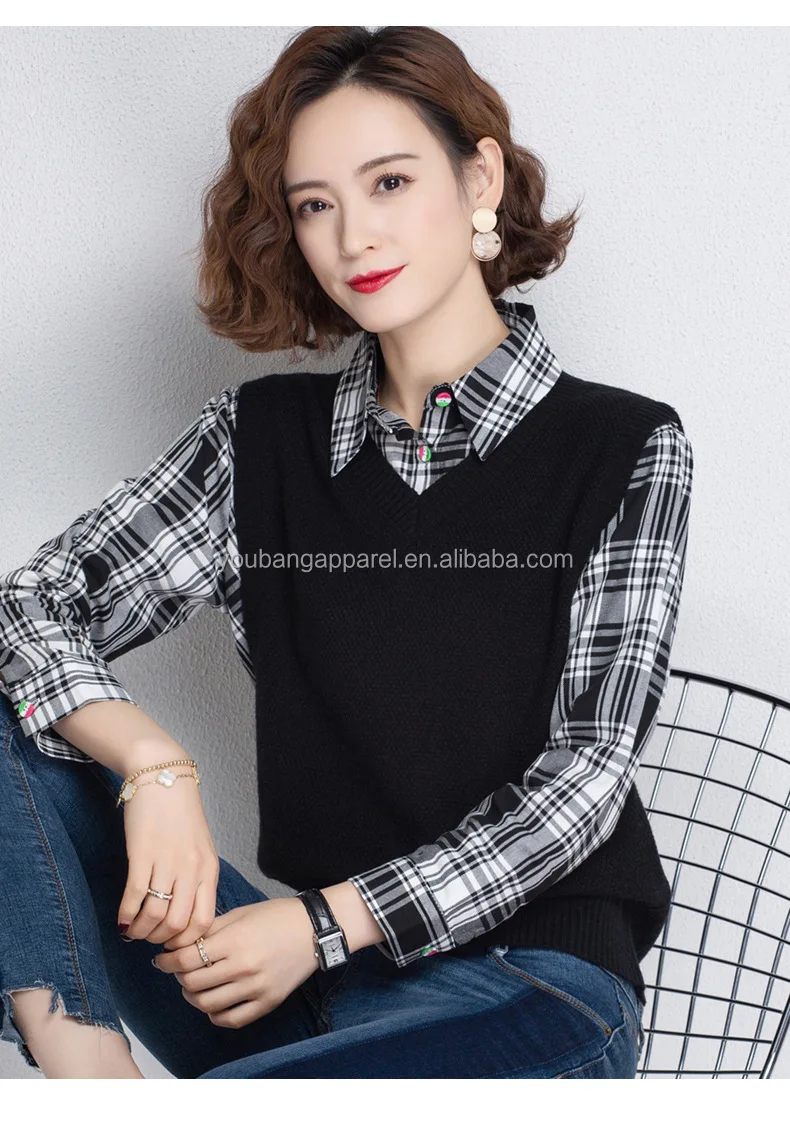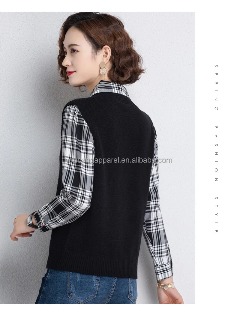 Pull fin à manches longues et col polo pour femme, coupe slim, patchwork, nouvelle collection printemps 2024
